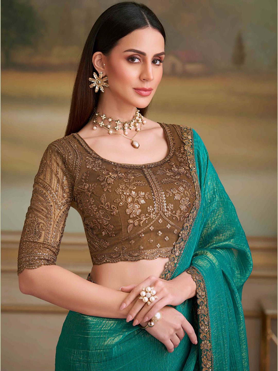 Blue color Saree in Georgette fabric with Embroidered, Thread work