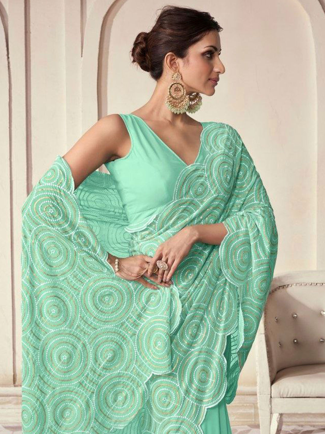 Green color Saree in Georgette fabric with Embroidered, Thread work