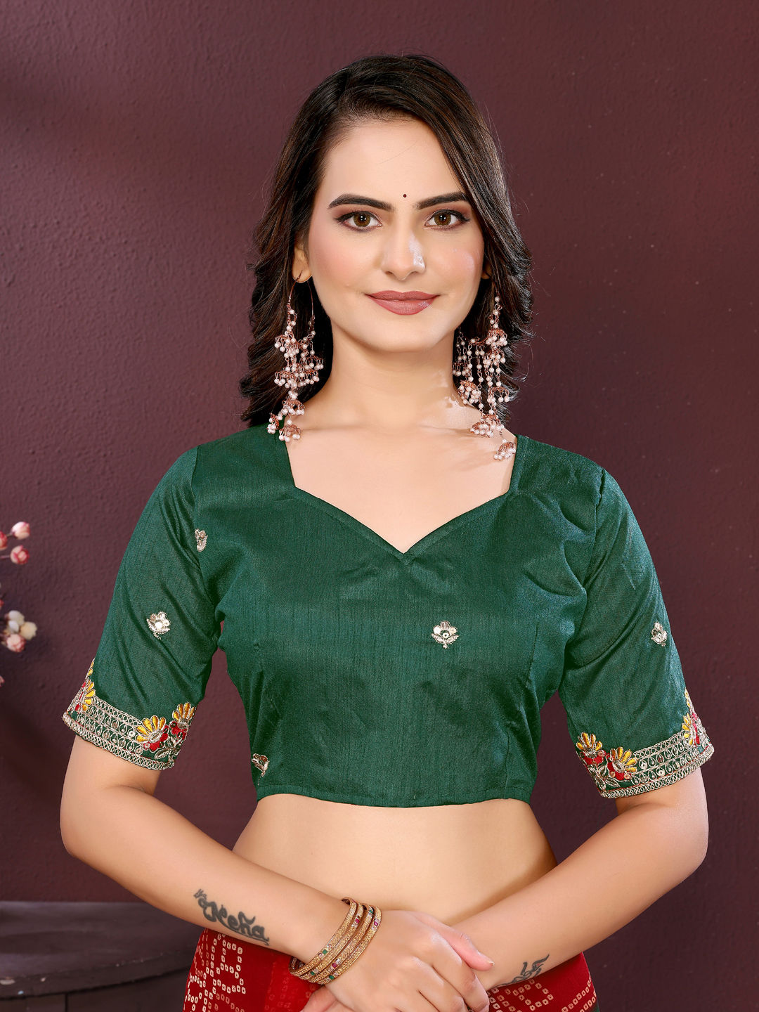 in Green with Embroidered work