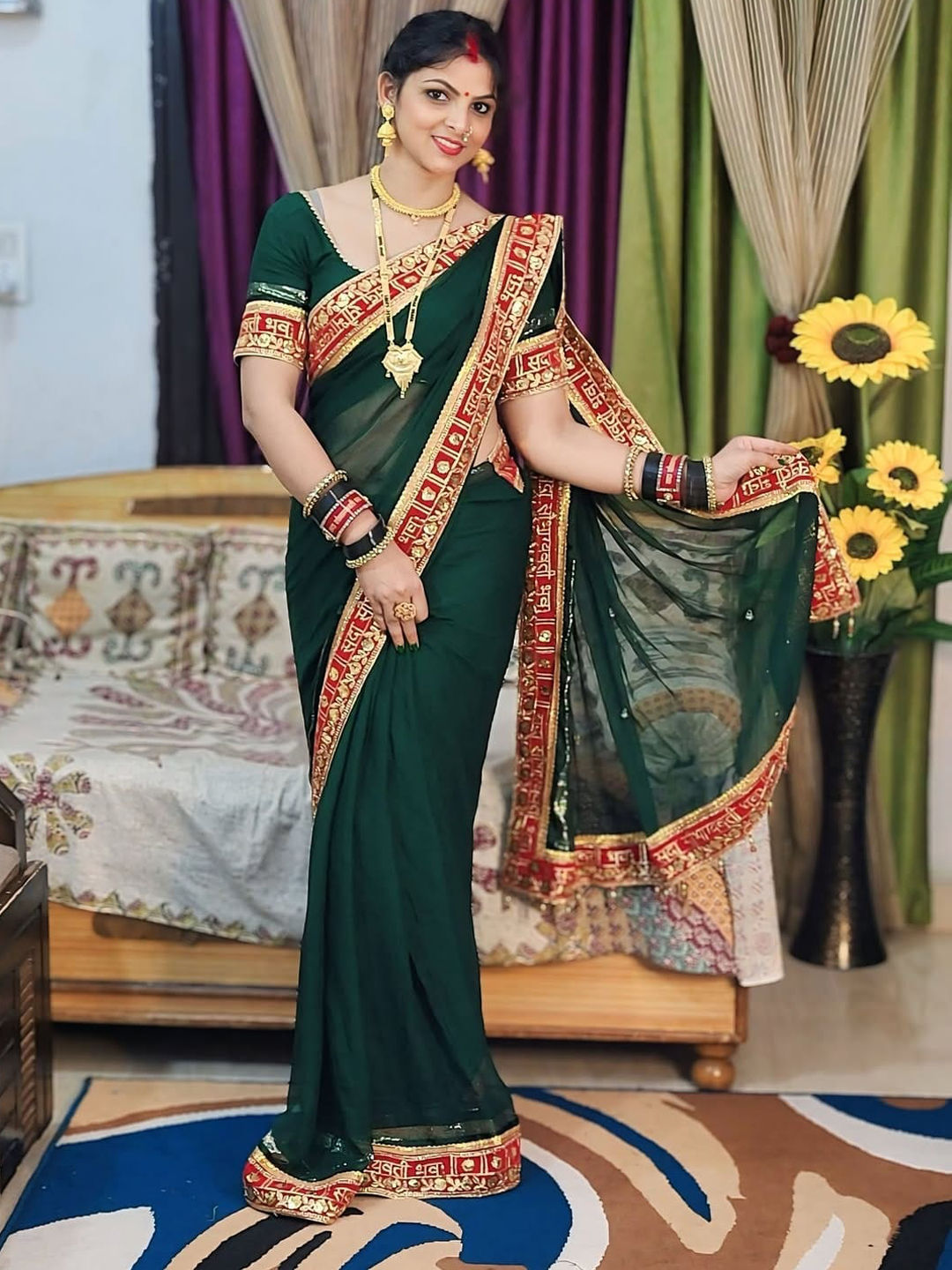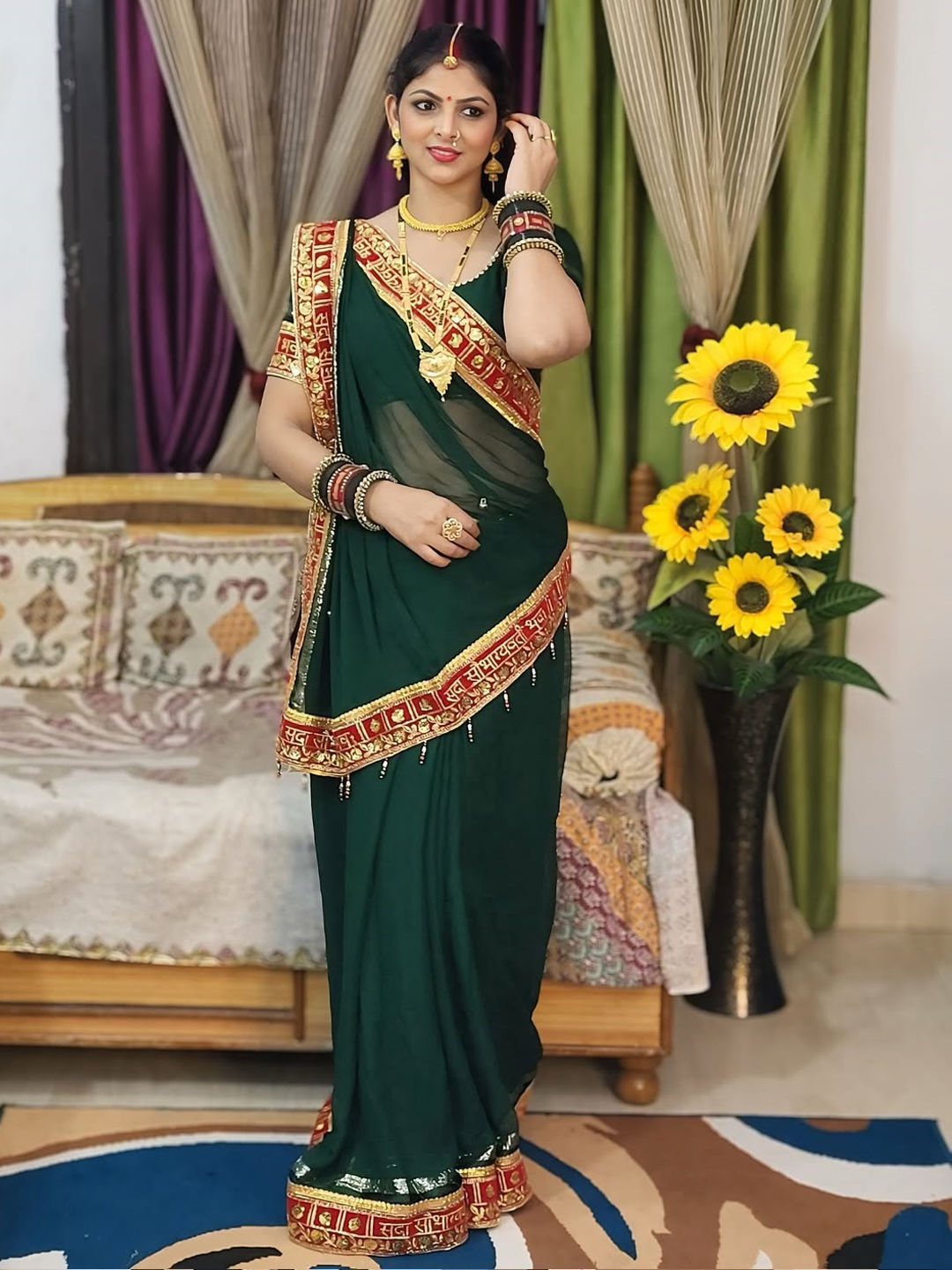 Green color Saree in Georgette fabric with Embroidered, Moti, Sequence work
