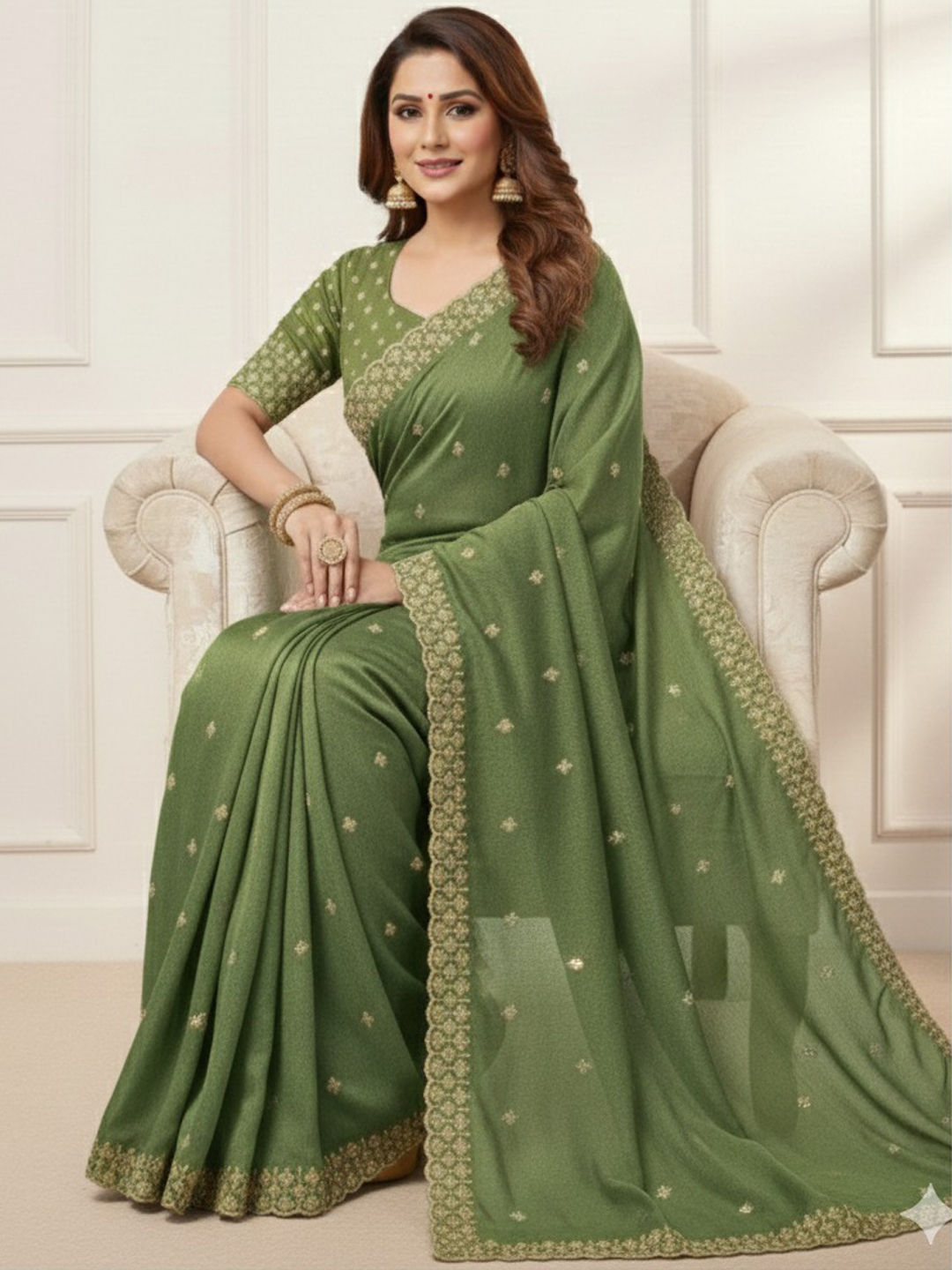 Green color Saree in Georgette fabric with Embroidered, Sequence, Thread work