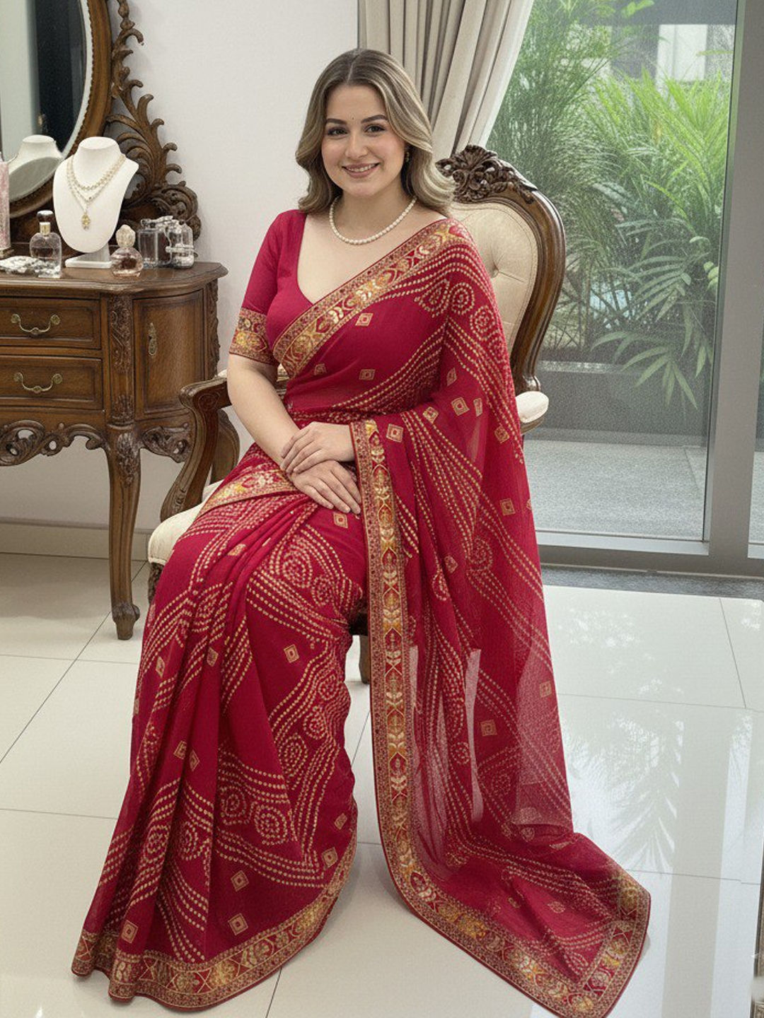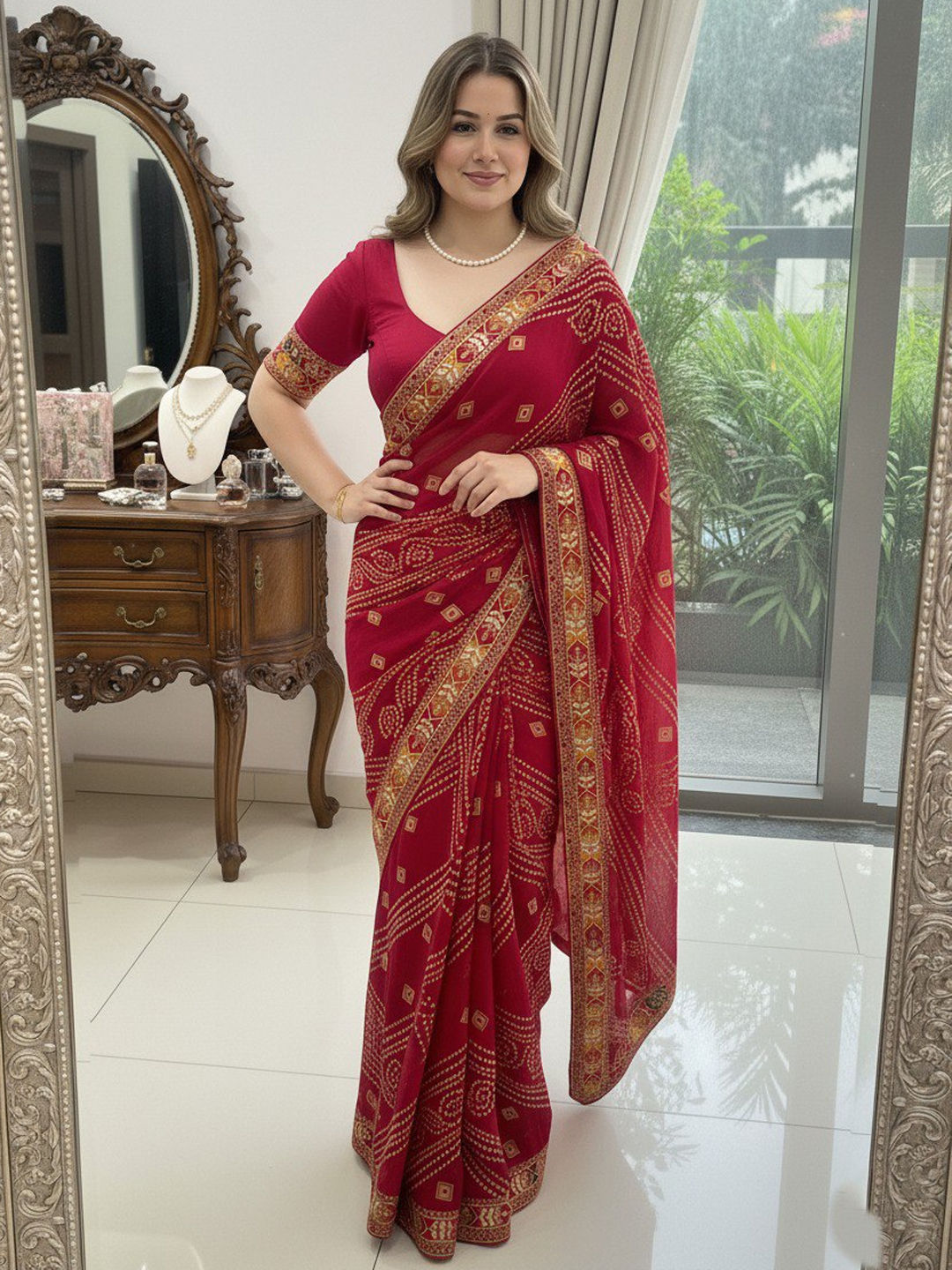 Georgette Party Wear Saree in Red and Maroon with Digital Print work