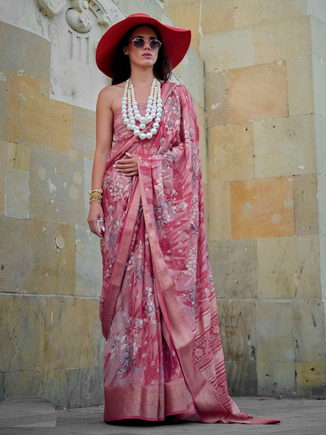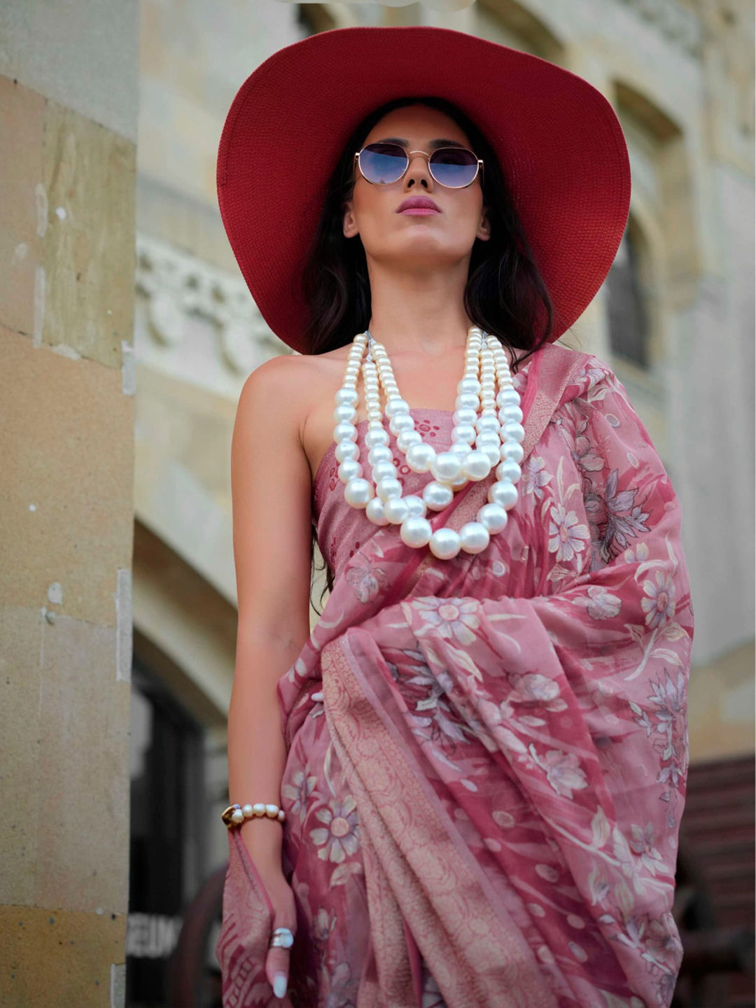 Pink and Majenta color Saree in Georgette fabric with Floral, Printed work