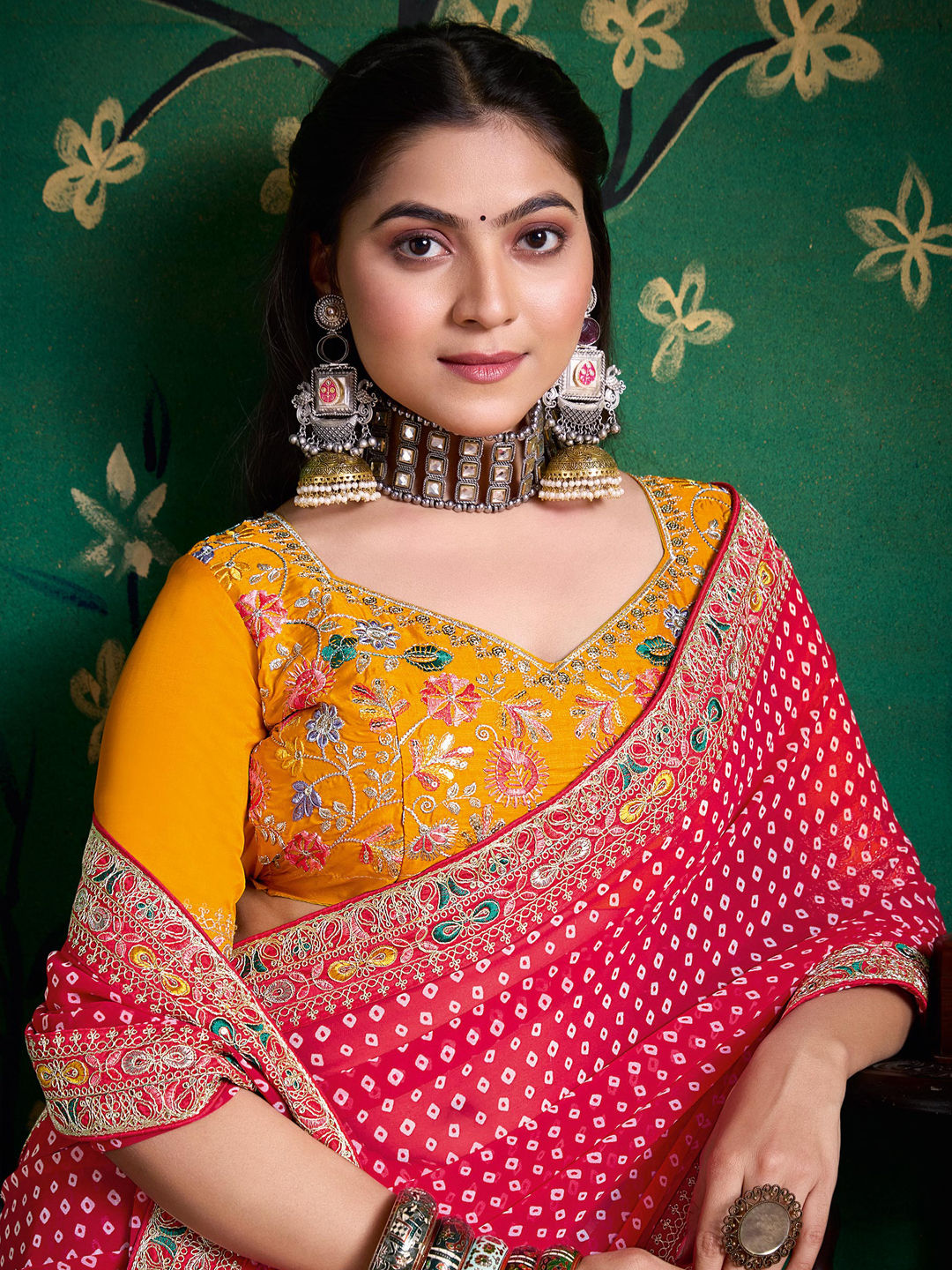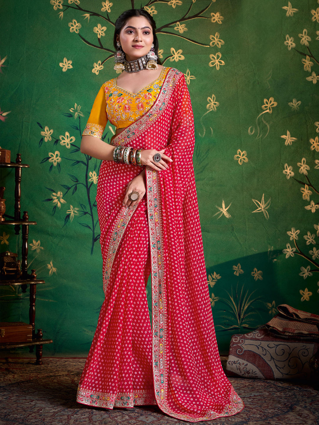 Georgette Festive Saree in Red and Maroon with Embroidered work