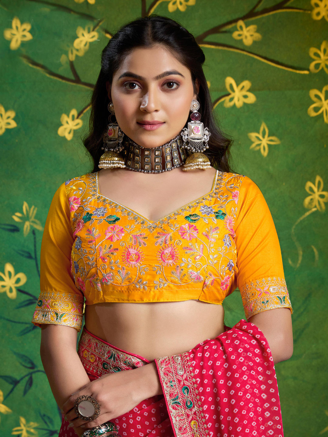 Pink and Majenta color Saree in Georgette fabric with Embroidered, Printed work
