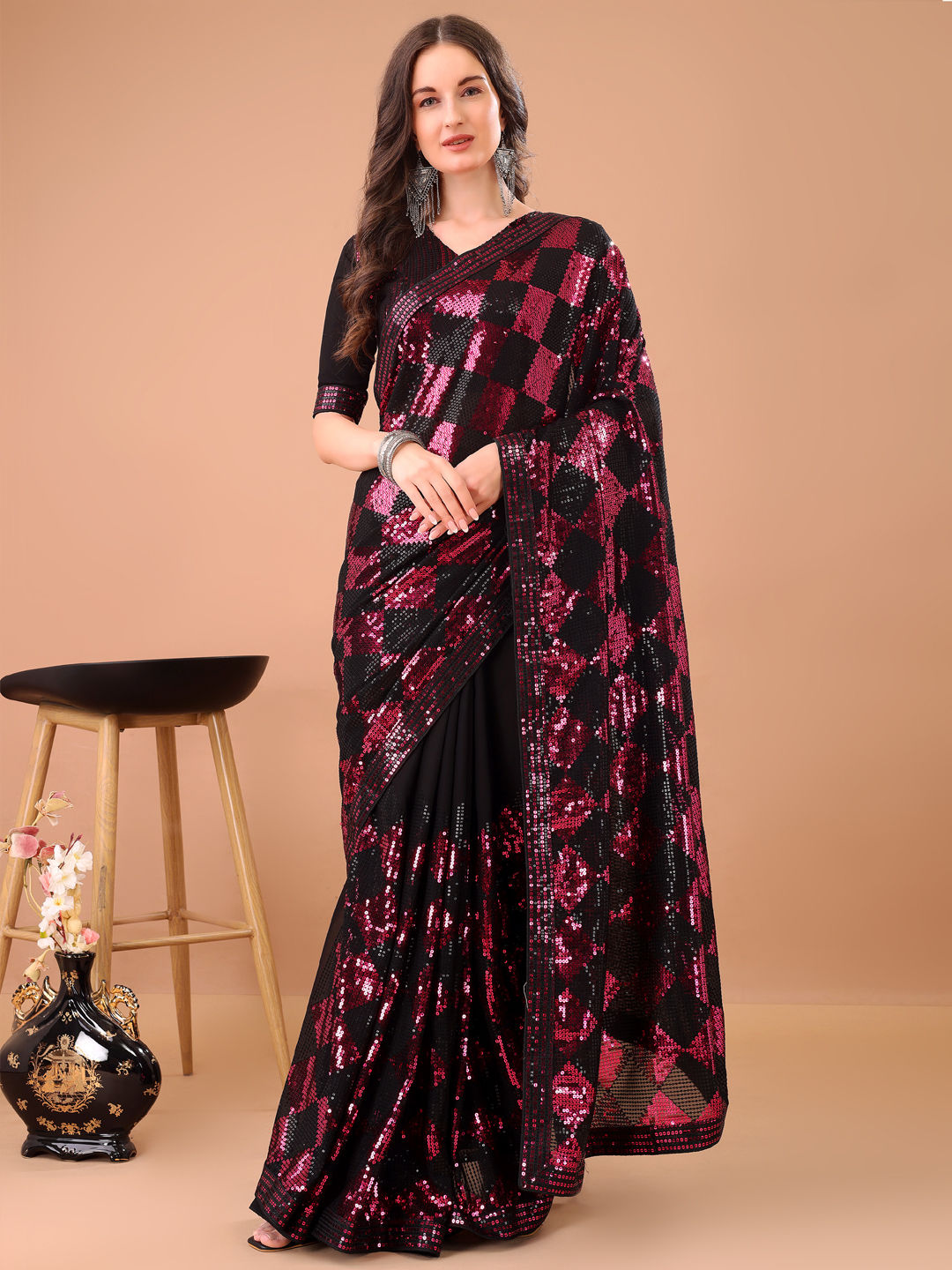 Pink and Majenta color Saree in Georgette fabric with Sequence work