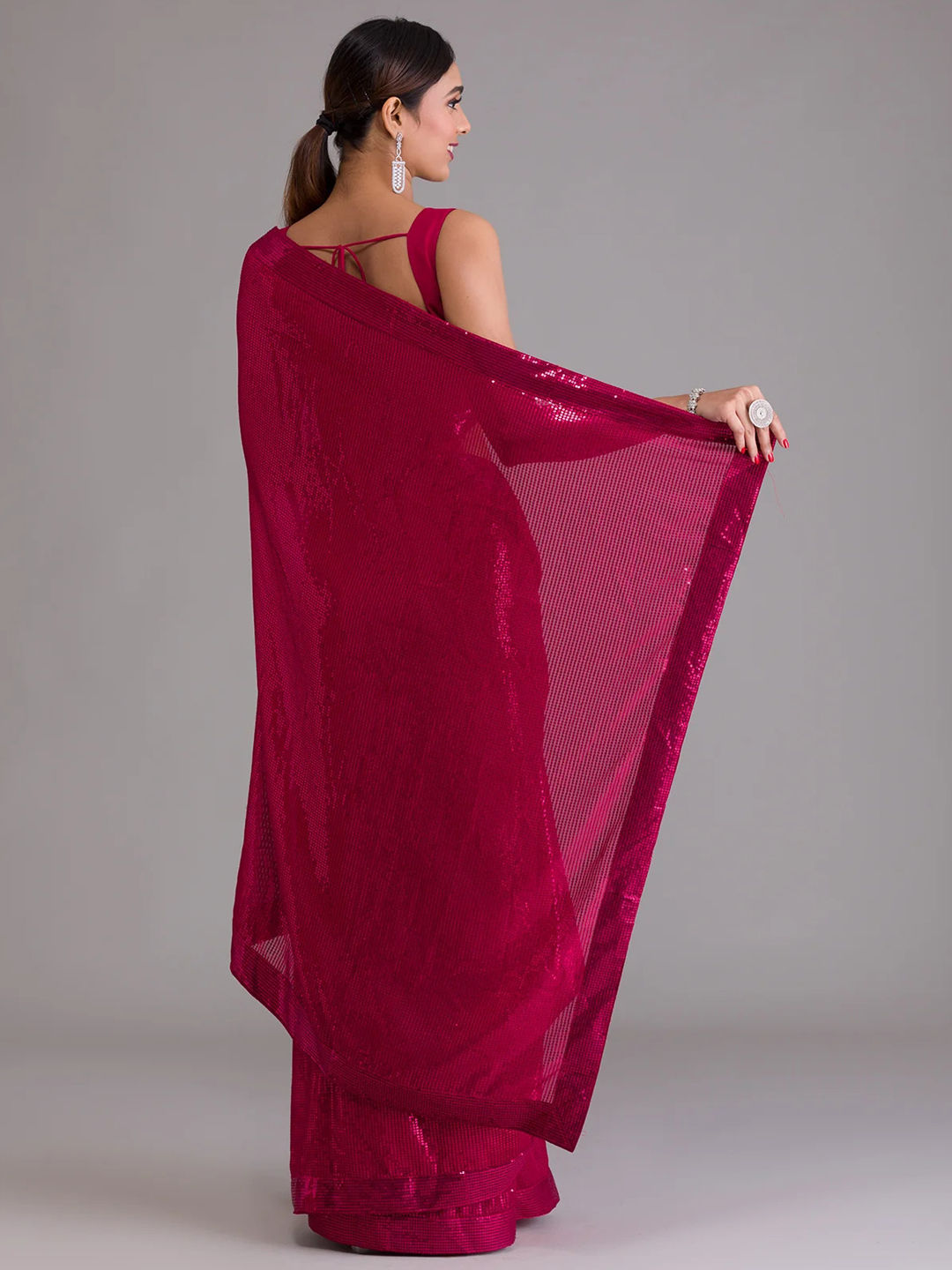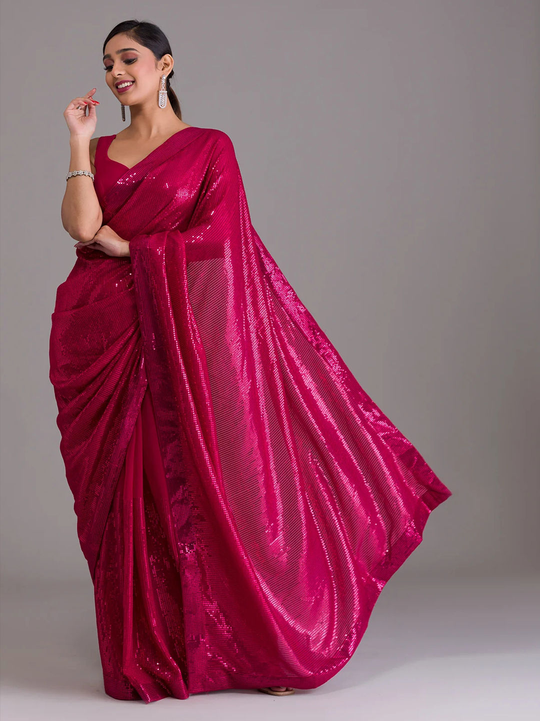 Pink and Majenta color Saree in Georgette fabric with Sequence work