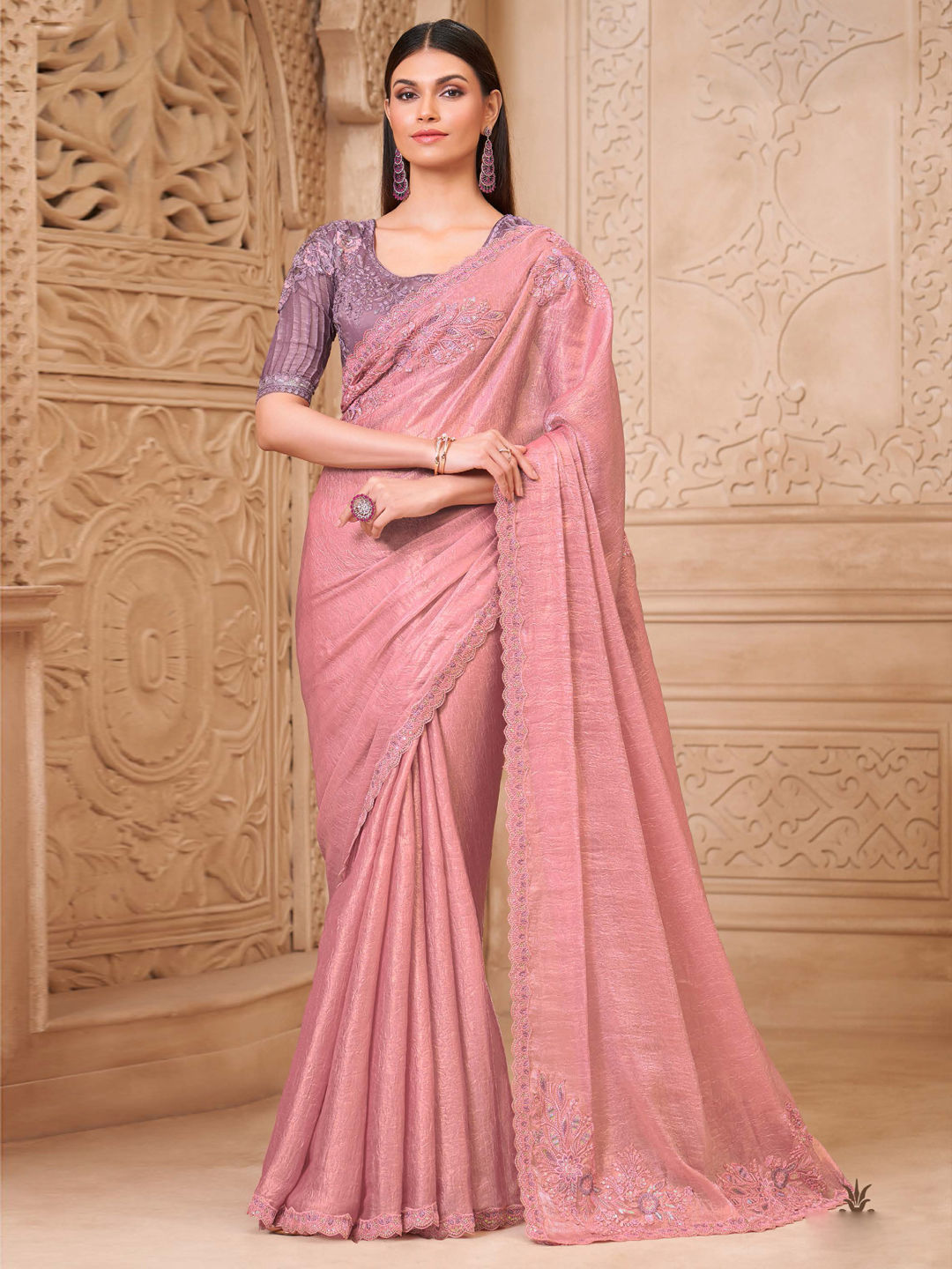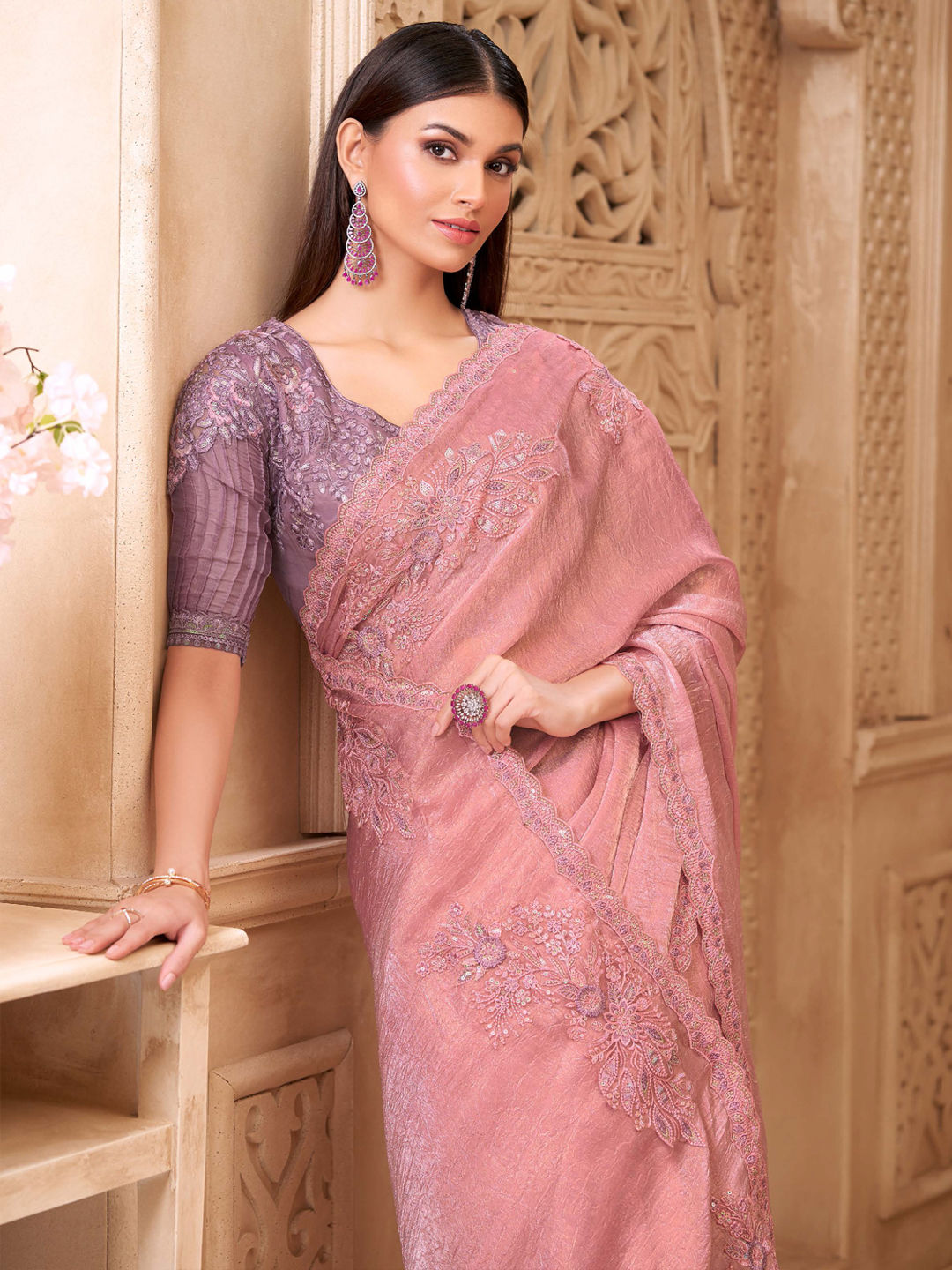Pink and Majenta color Saree in Georgette fabric with Embroidered, Sequence work