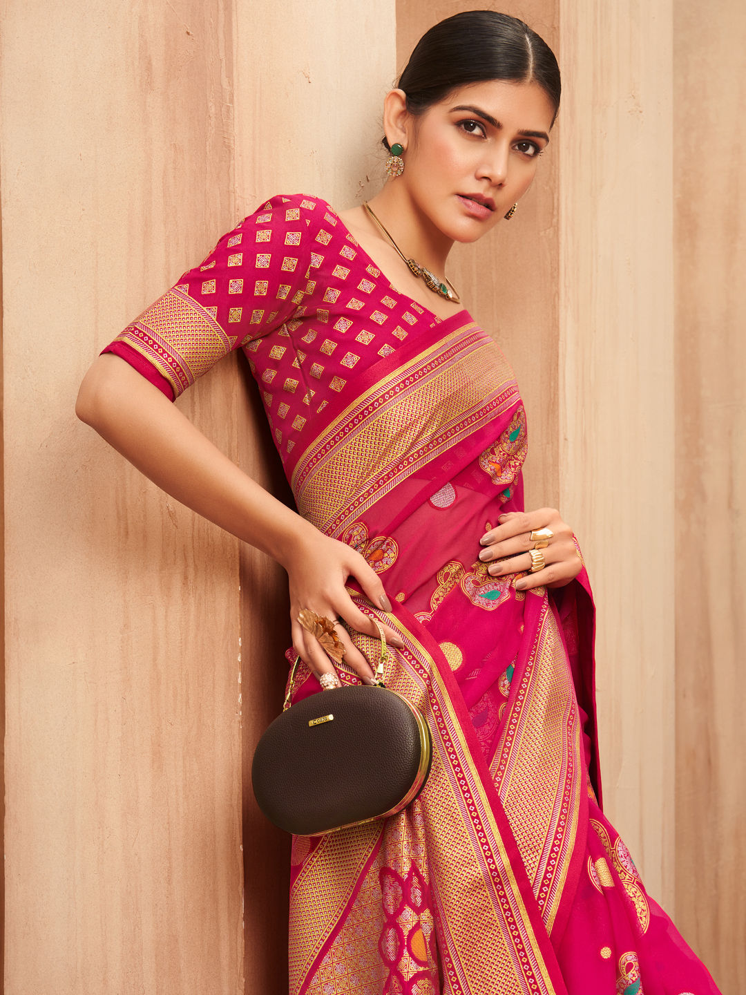 Pink and Majenta color Saree in Georgette fabric with Weaving work