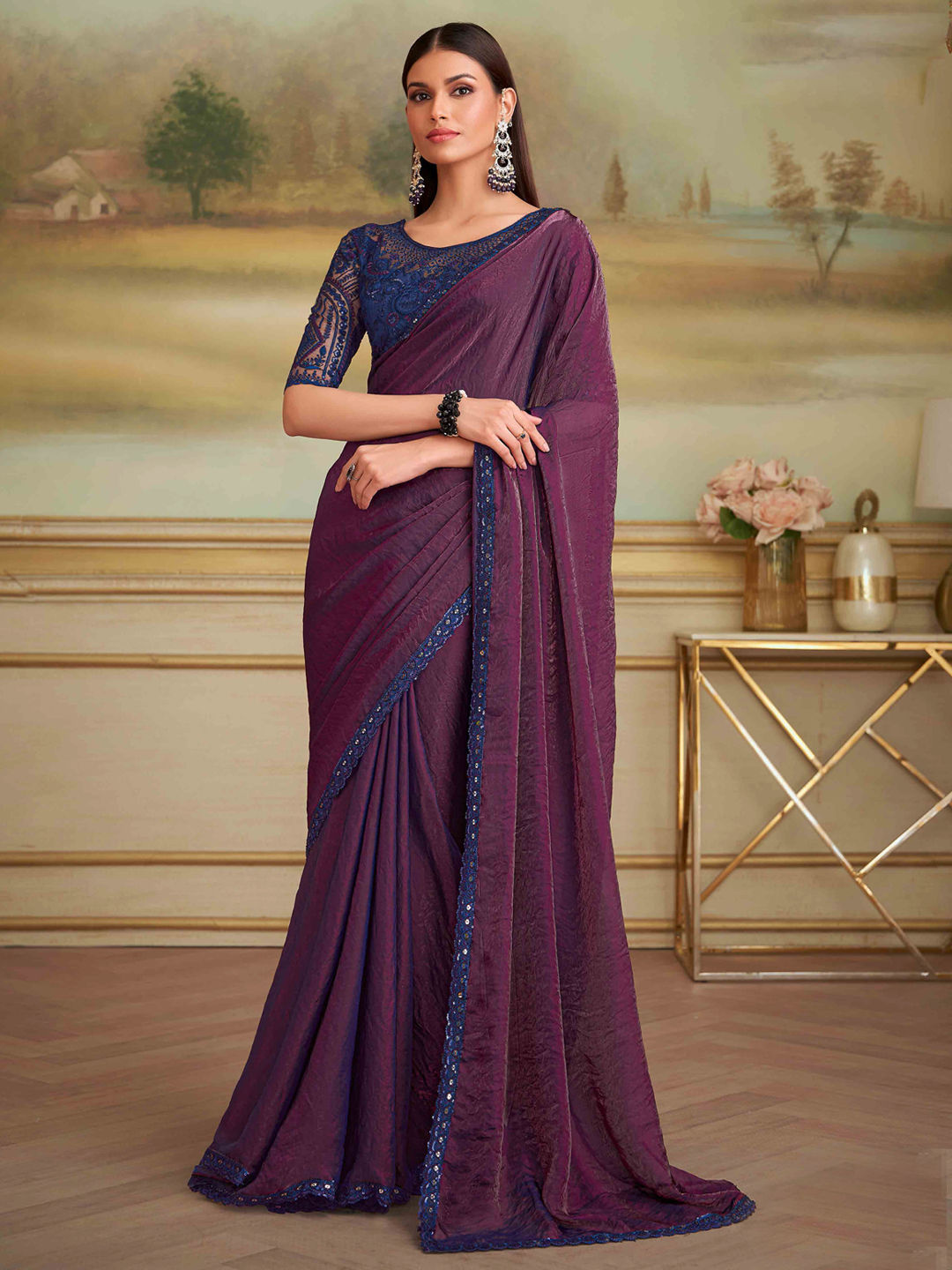 Purple and Violet color Saree in Georgette fabric with Embroidered, Thread work