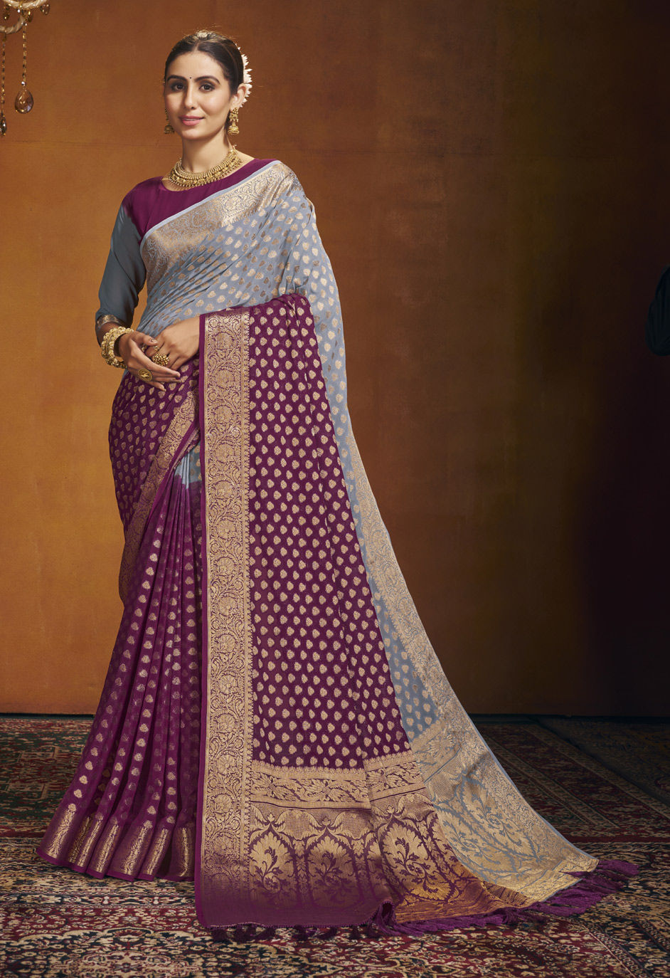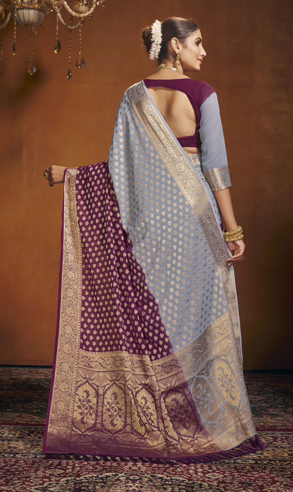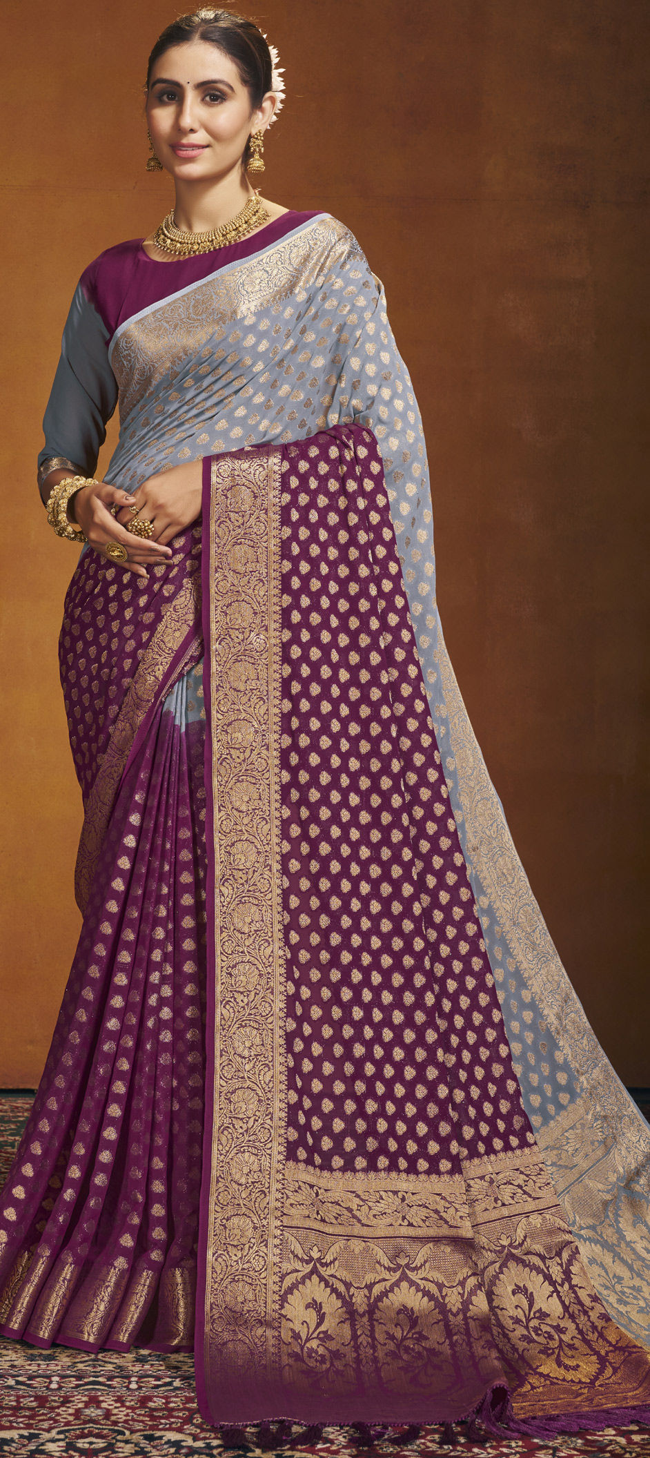 Black and Grey, Purple and Violet color Saree in Georgette fabric with Weaving work
