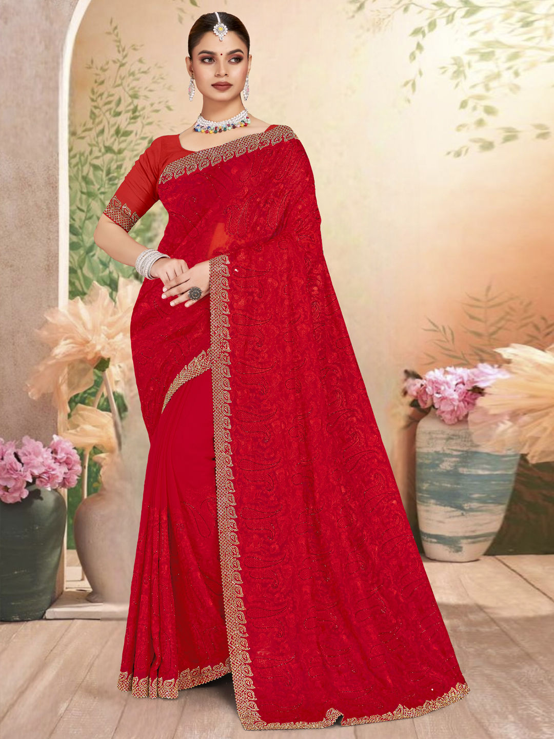 in Red and Maroon with Embroidered work