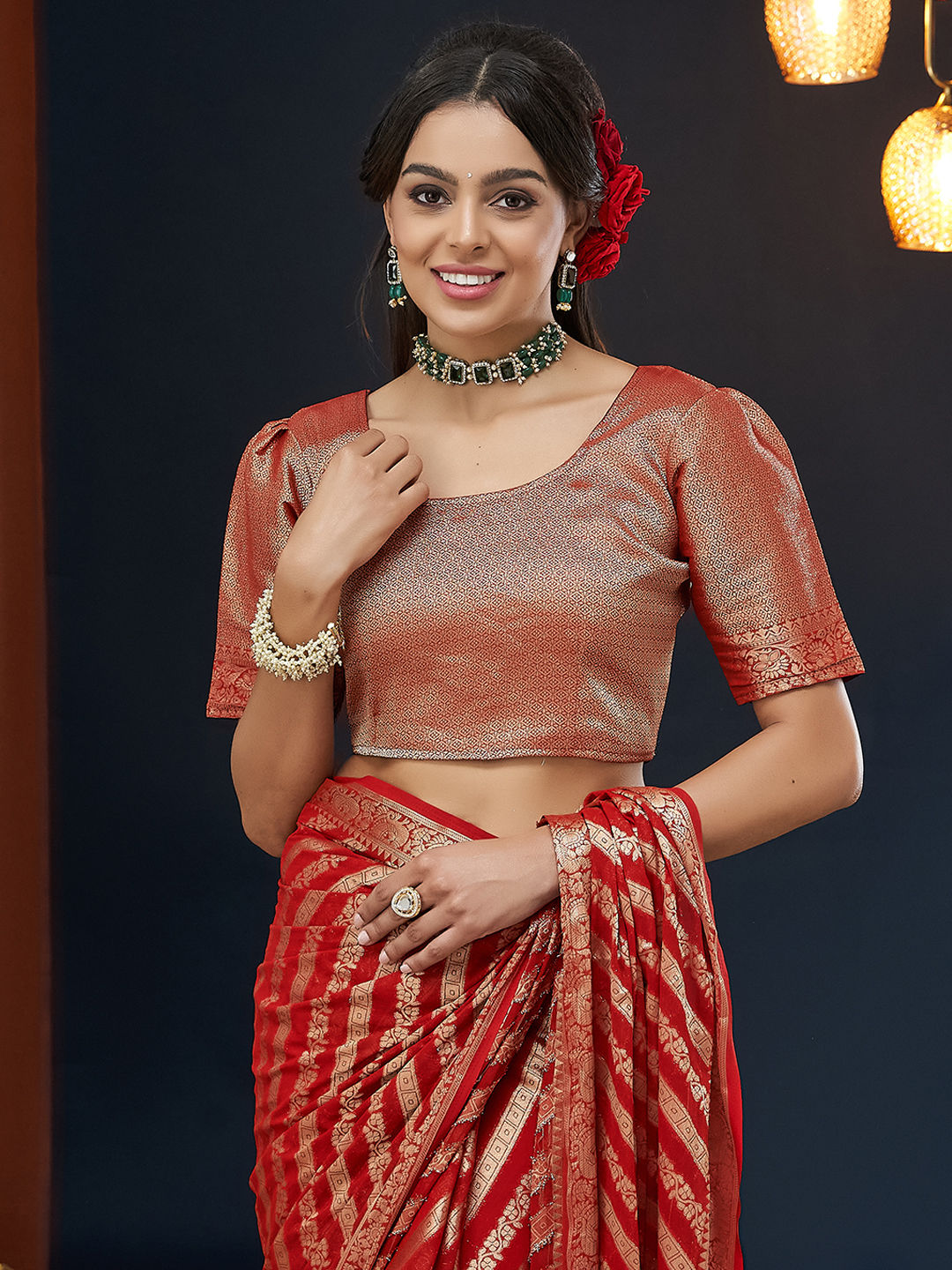 Red and Maroon color Saree in Georgette fabric with Weaving, Zari work