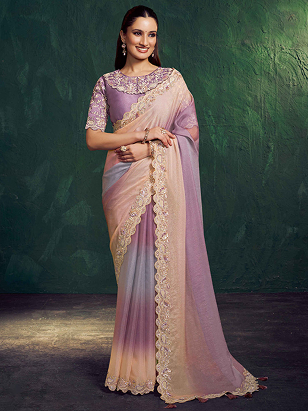 Tissue Reception Readymade Saree in Purple and Violet with Embroidered work