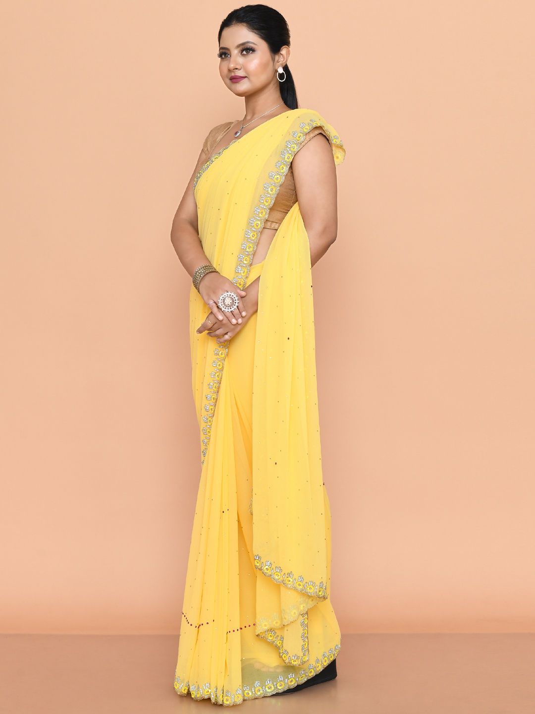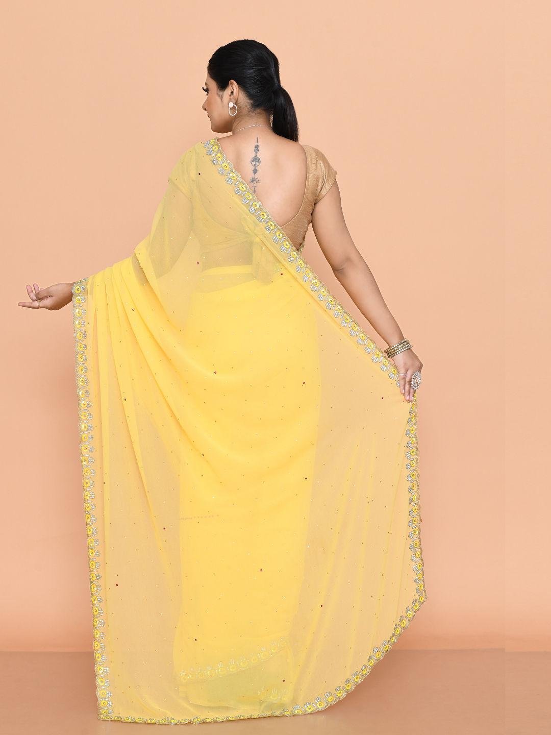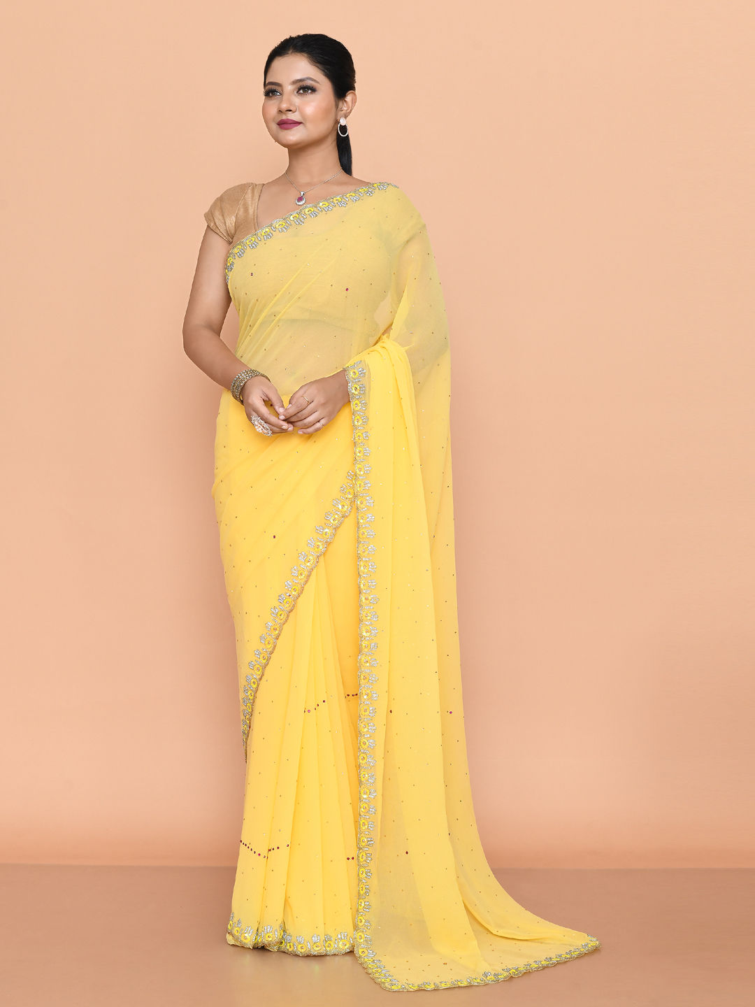 Yellow color Saree in Georgette fabric with Cut Dana, Sequence, Stone work