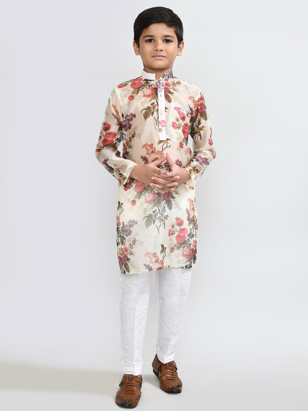 Cotton Festive Boys Kurta Pyjama in Multicolor with Printed work