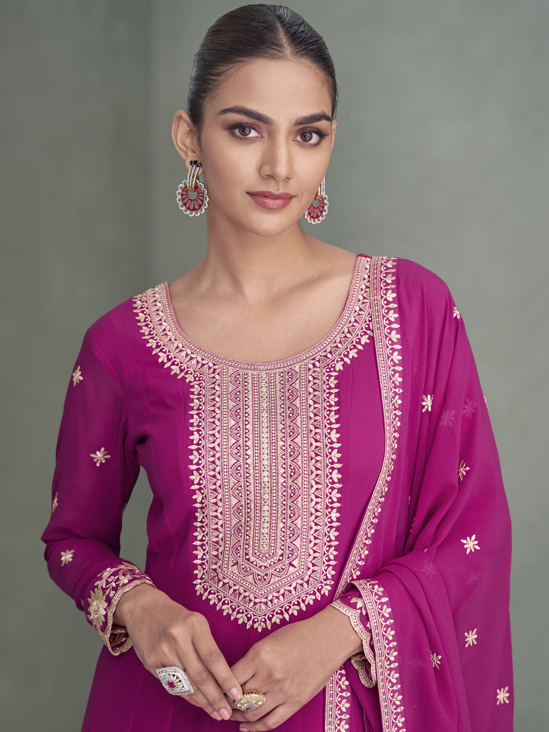 Pink and Majenta color Gown in Georgette fabric with Embroidered, Thread work