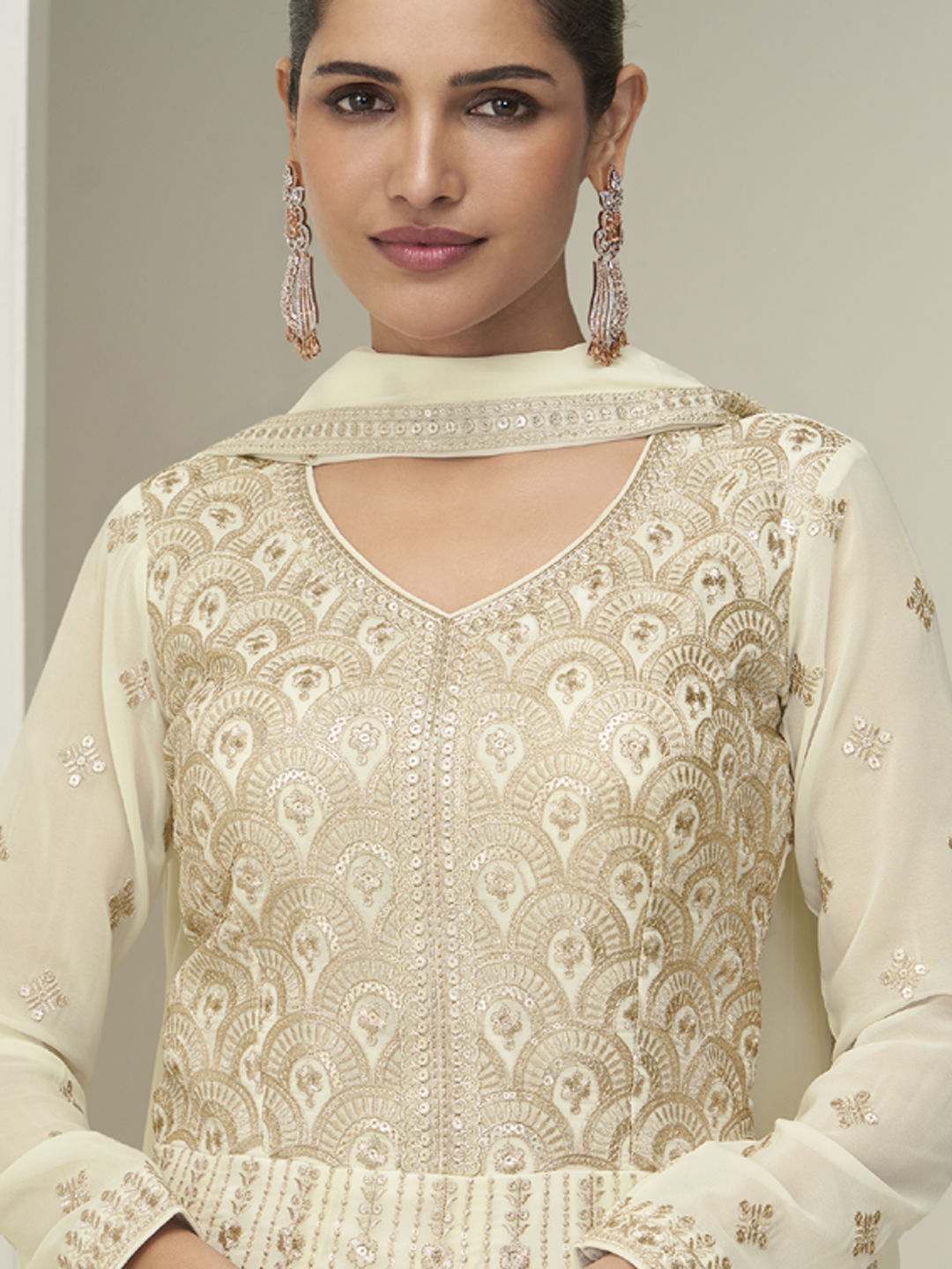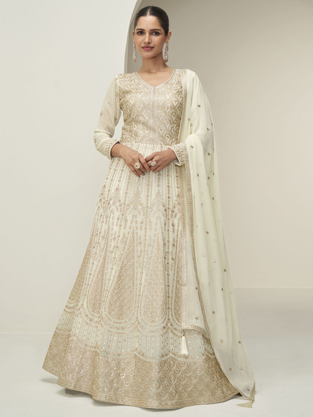 White and Off White color Gown in Georgette fabric with Embroidered, Sequence, Thread work