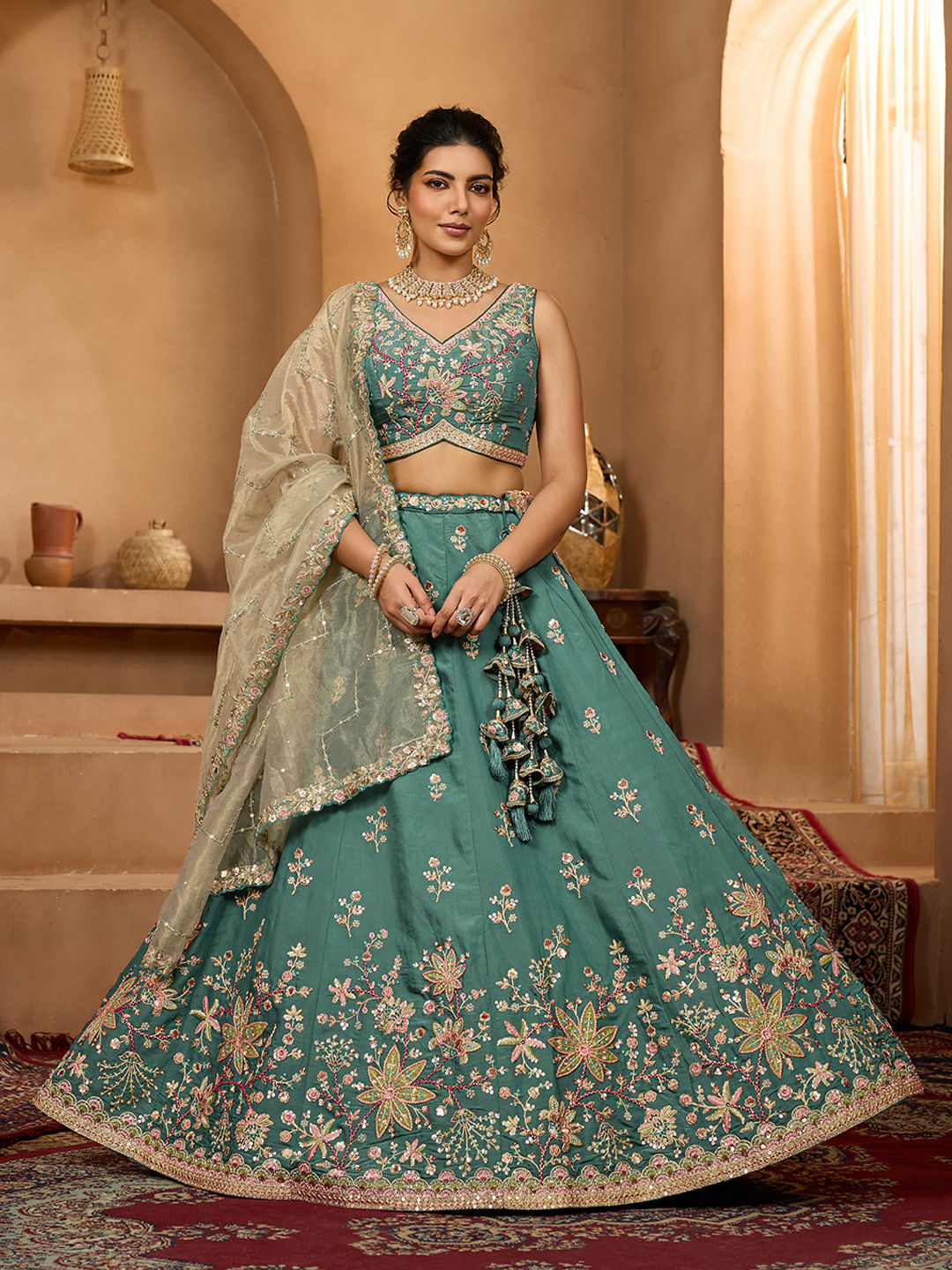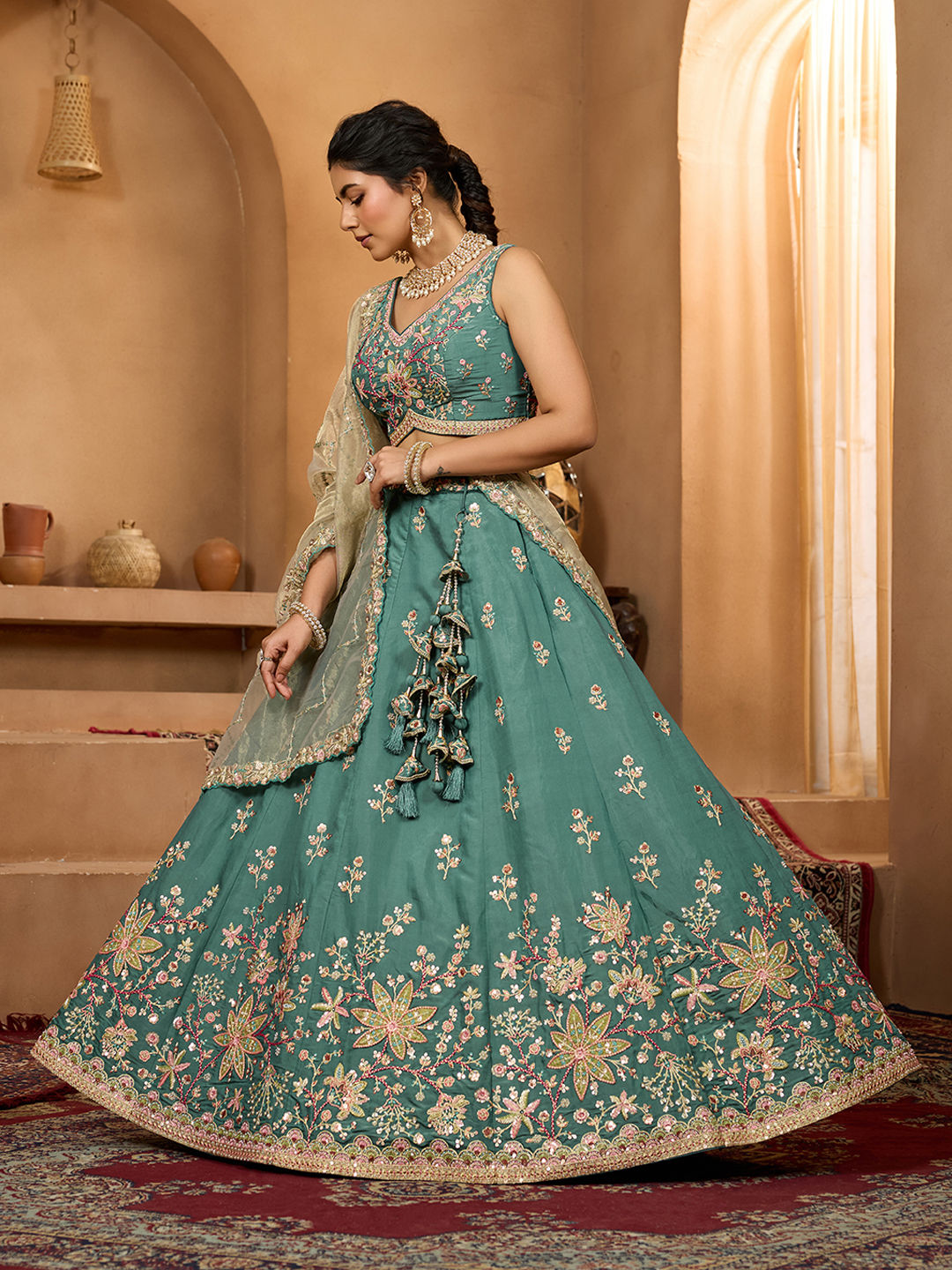 Green color Lehenga in Georgette fabric with Embroidered, Sequence, Stone, Thread work