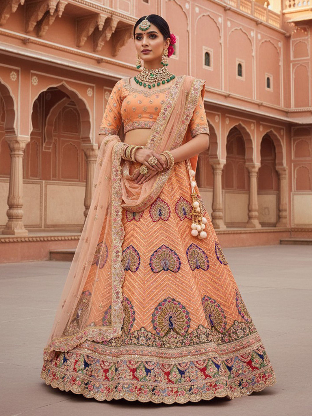 Velvet Wedding Lehenga in Purple and Violet with Thread work