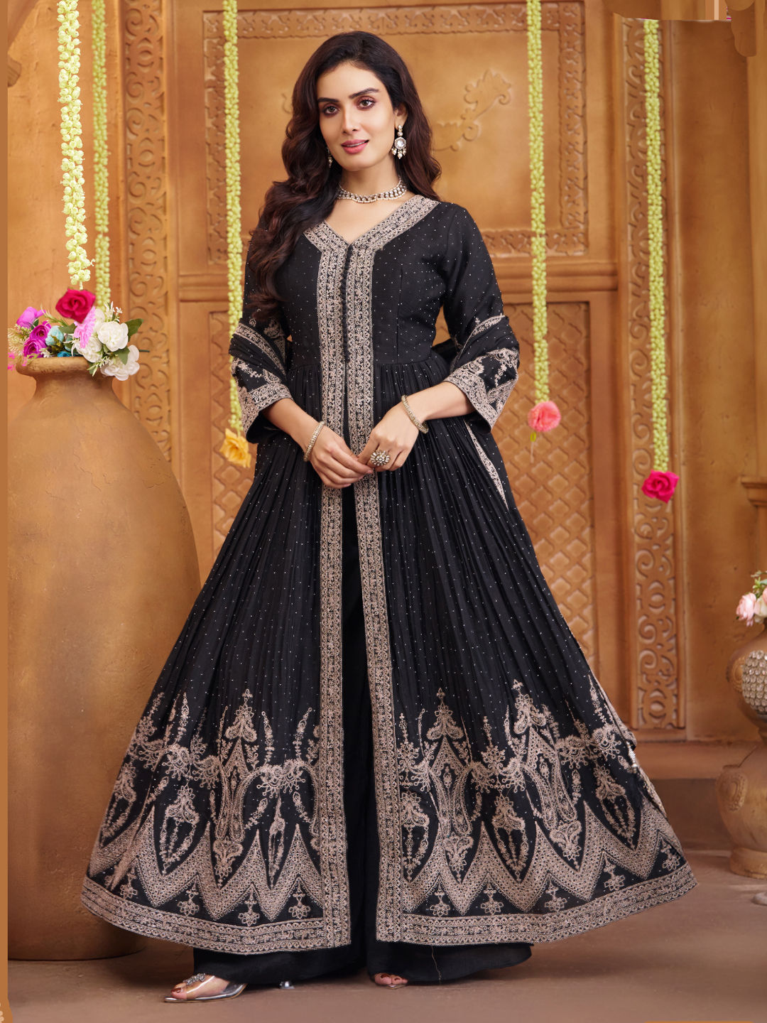Black and Grey color Salwar Kameez in Georgette fabric with Embroidered, Sequence, Thread, Zari work