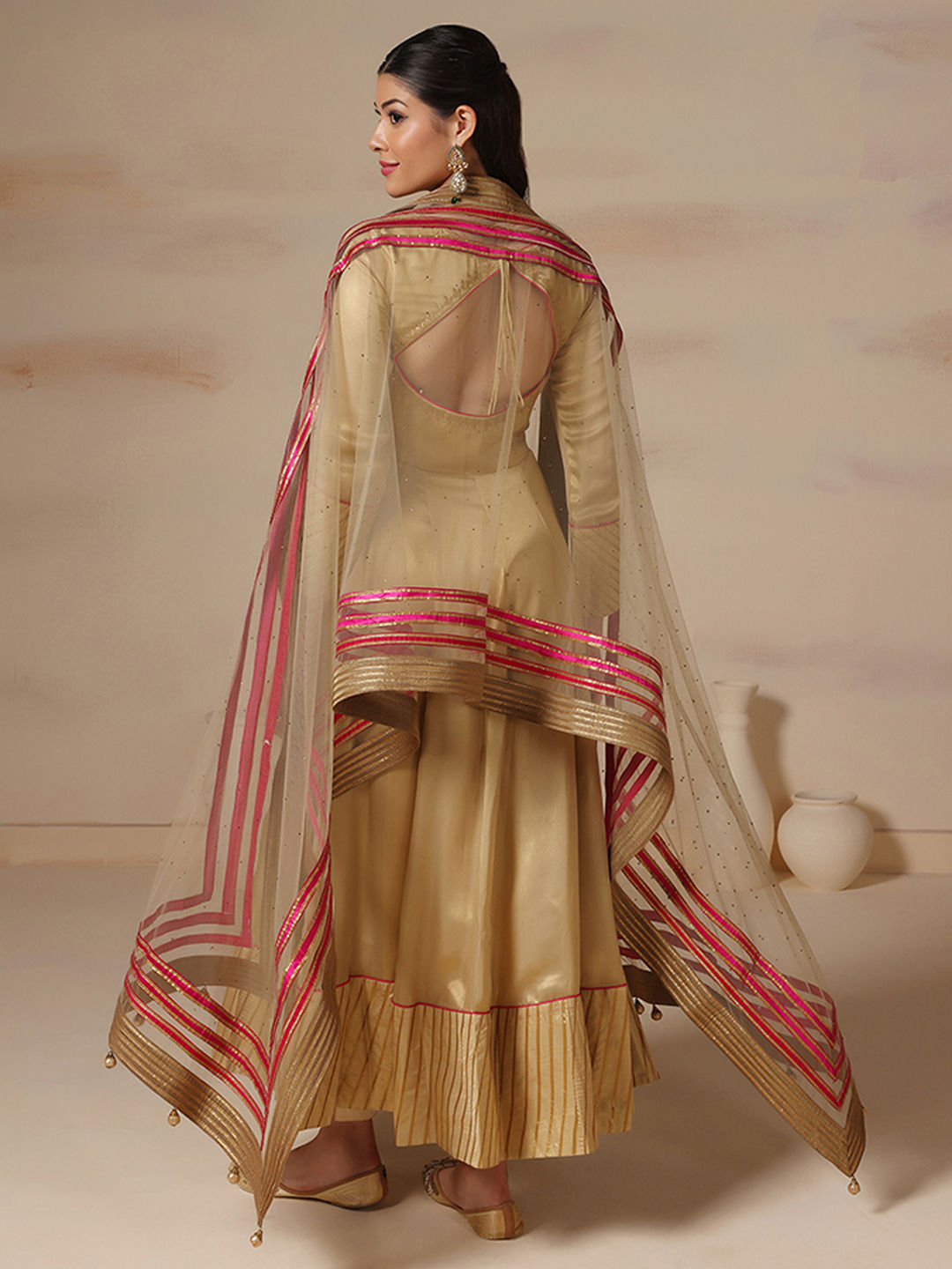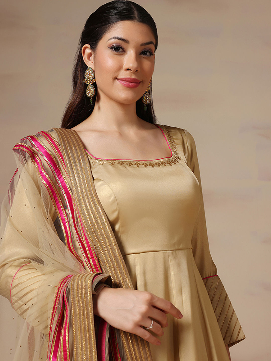 Gold color Salwar Kameez in Georgette fabric with Thread work