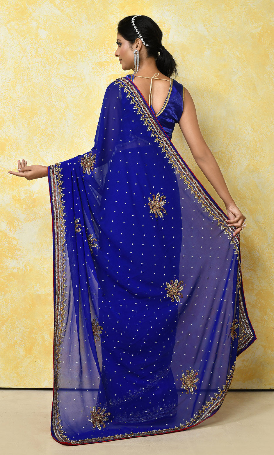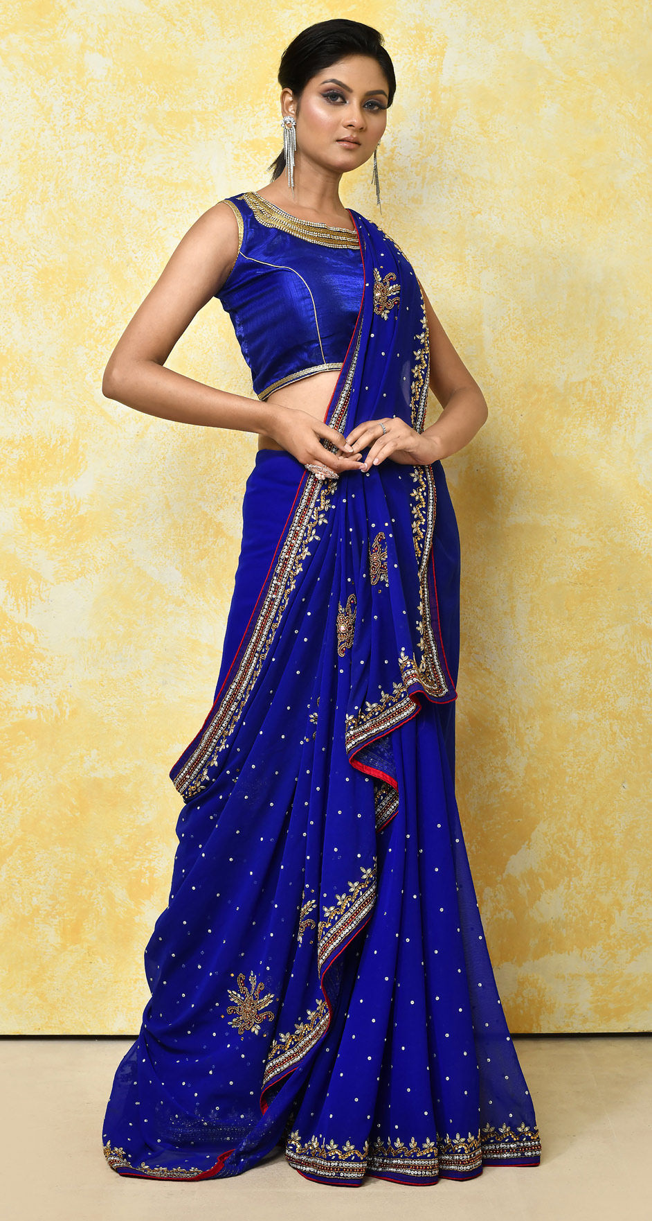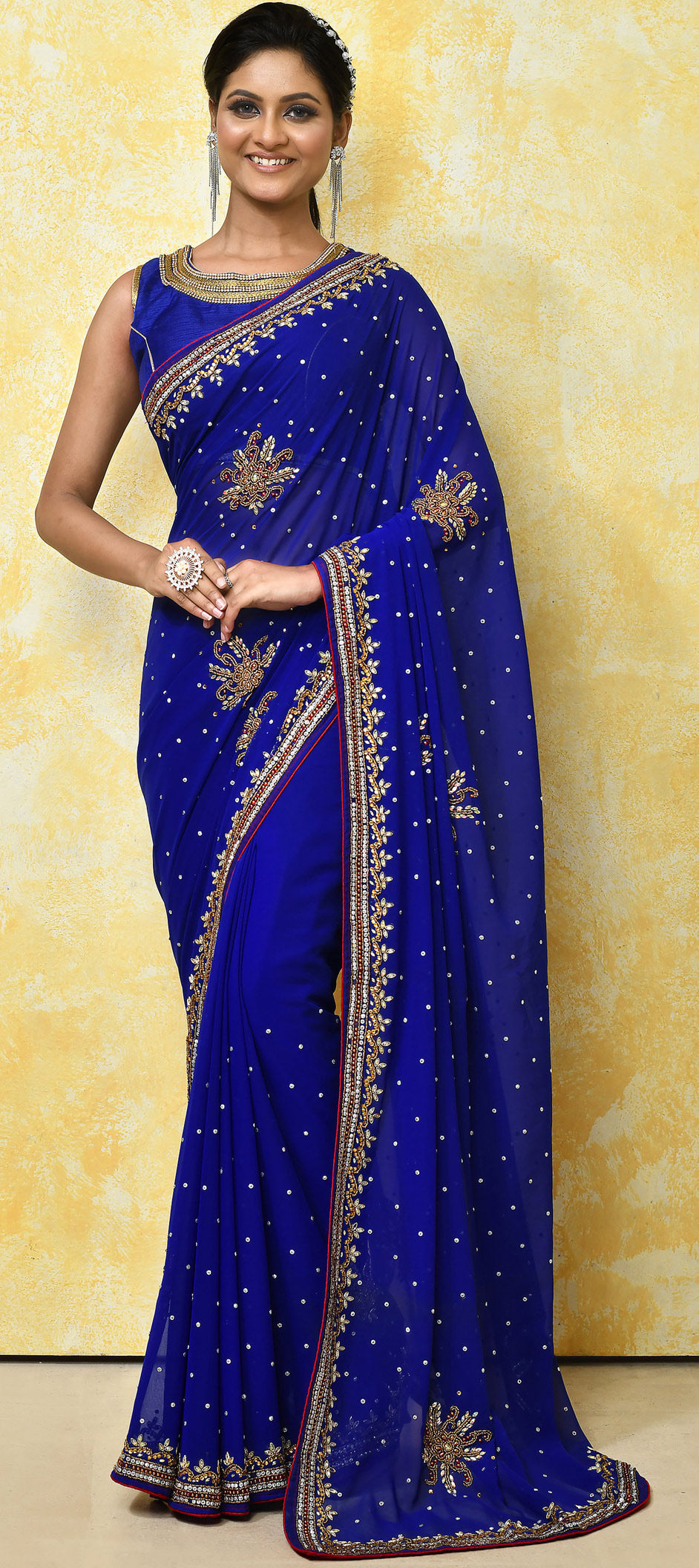 Blue color Saree in Georgette fabric with Bugle Beads, Cut Dana, Stone work