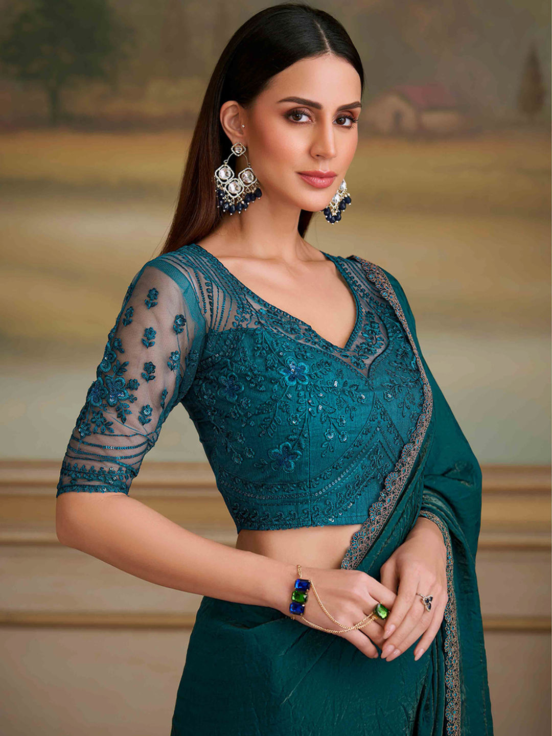 Blue color Saree in Georgette fabric with Embroidered, Thread work