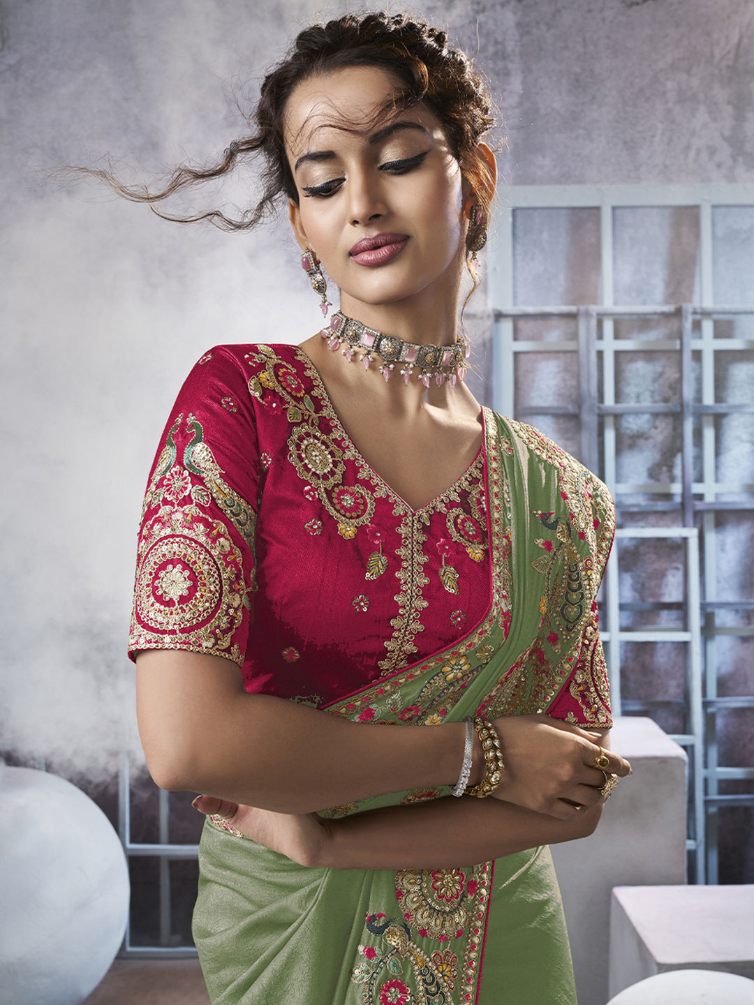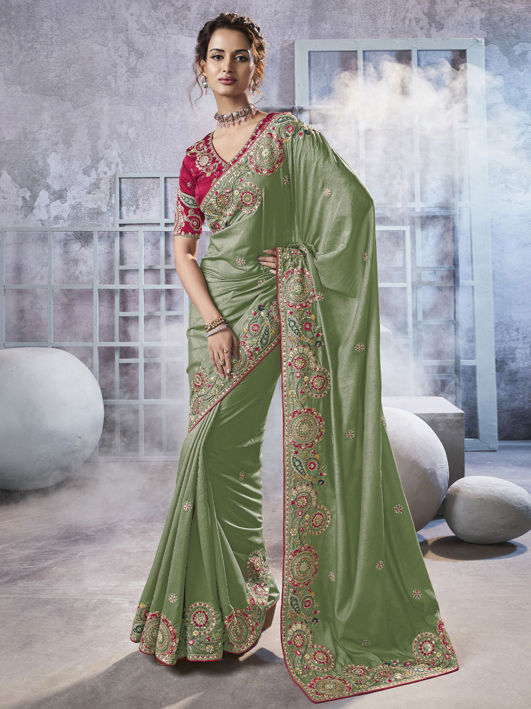 Green color Saree in Georgette fabric with Embroidered, Sequence, Stone, Thread, Zari work