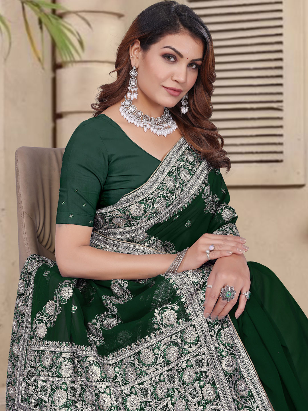 Green color Saree in Georgette fabric with Embroidered, Resham, Thread, Zari, Zircon work