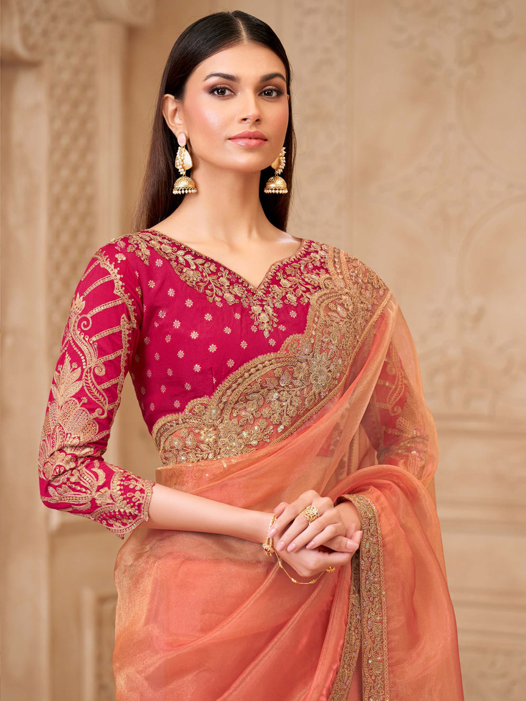 Orange color Saree in Georgette fabric with Embroidered, Sequence work