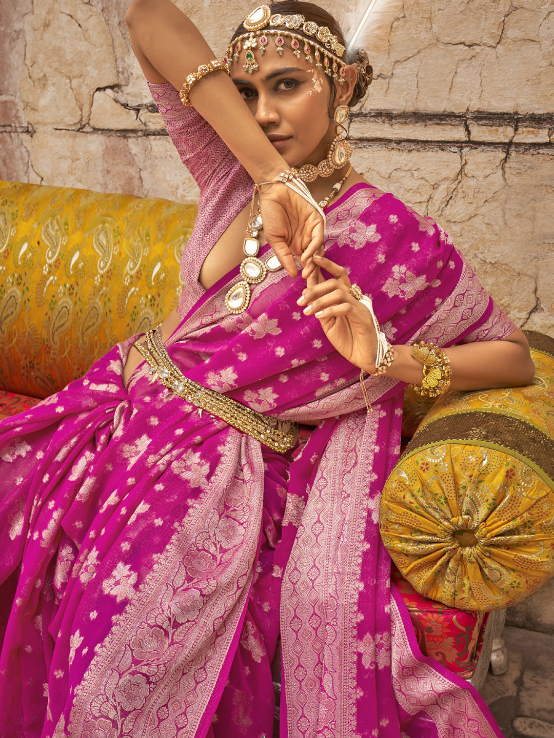 in Pink and Majenta with Zari work