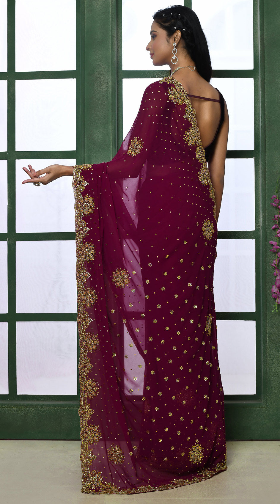 Purple and Violet color Saree in Georgette fabric with Bugle Beads, Cut Dana, Stone work