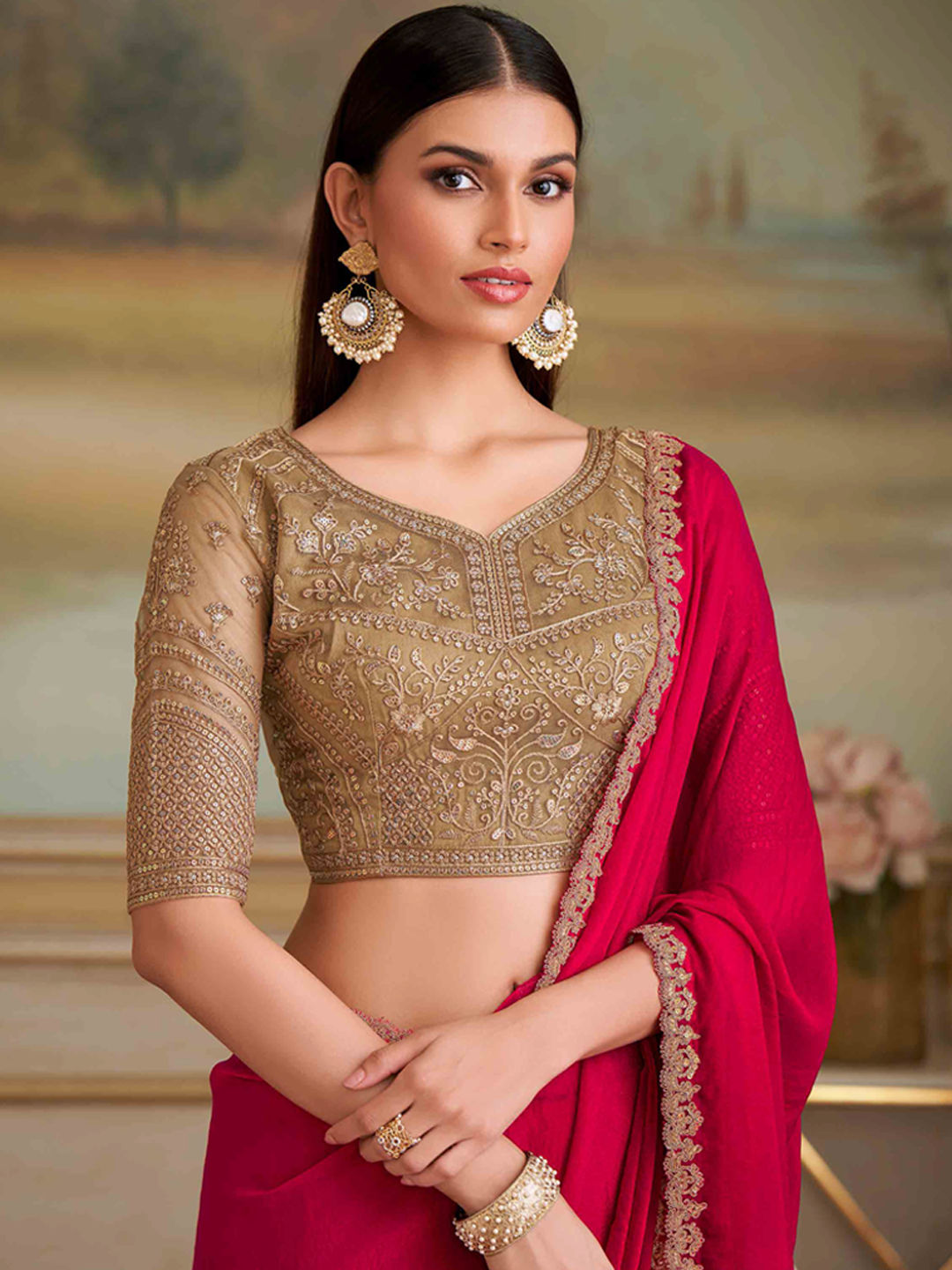 Georgette Reception Saree in Pink and Majenta with Embroidered work
