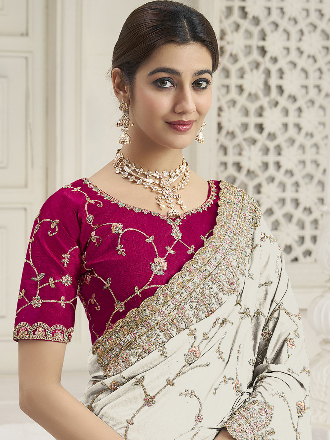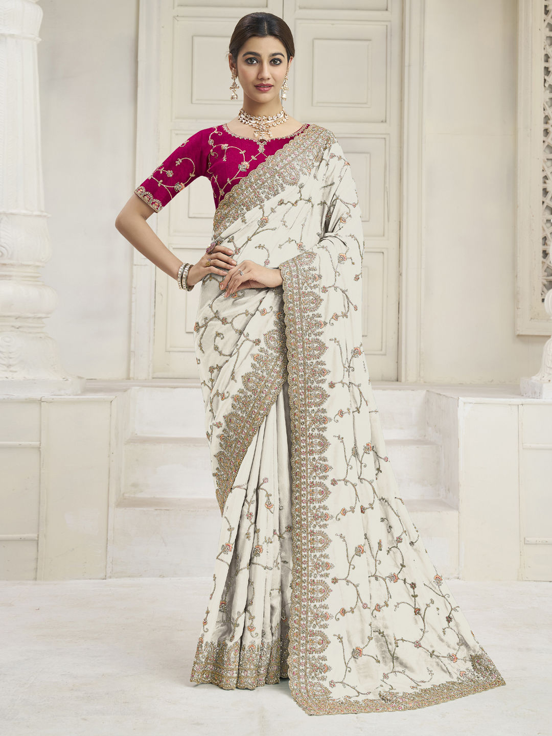 in White and Off White with Zari work