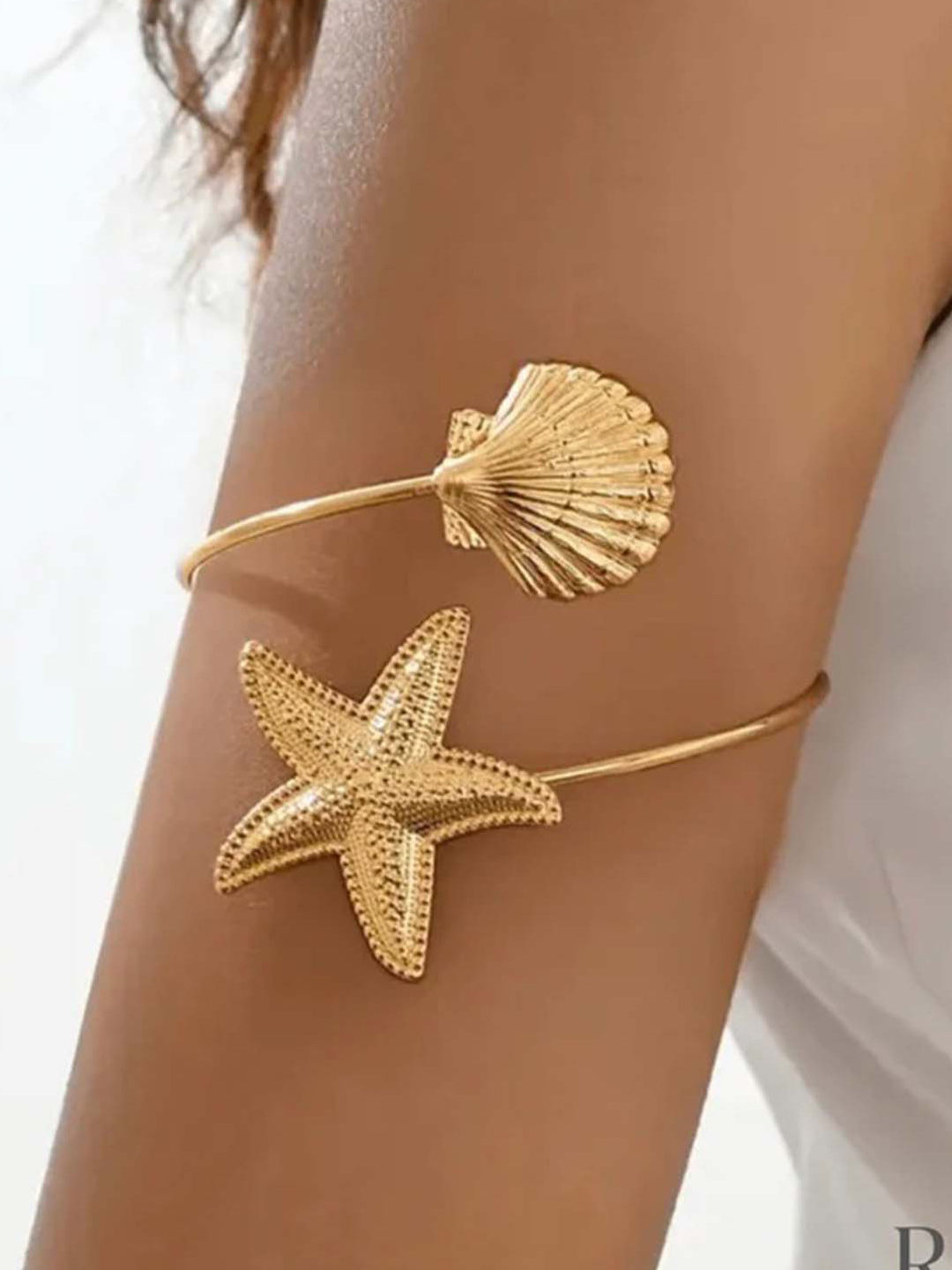Gold Rodium Polish Gold Armlet in Metal Alloy with Artificial