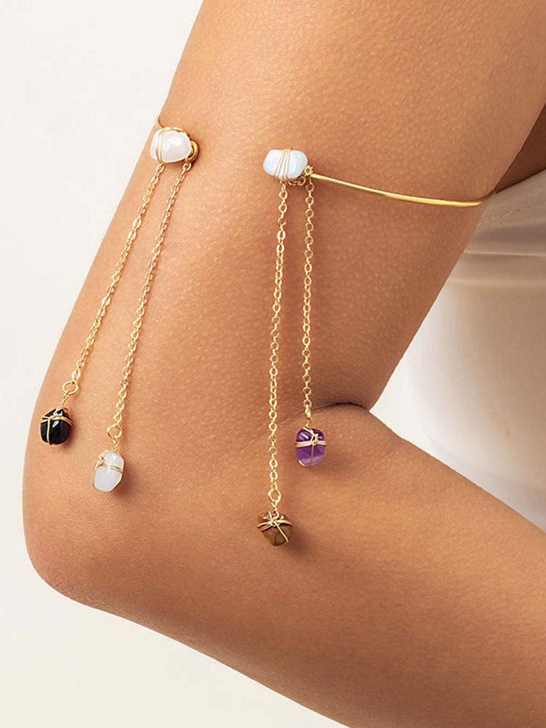 Gold Rodium Polish Gold Armlet in Metal Alloy with Artificial