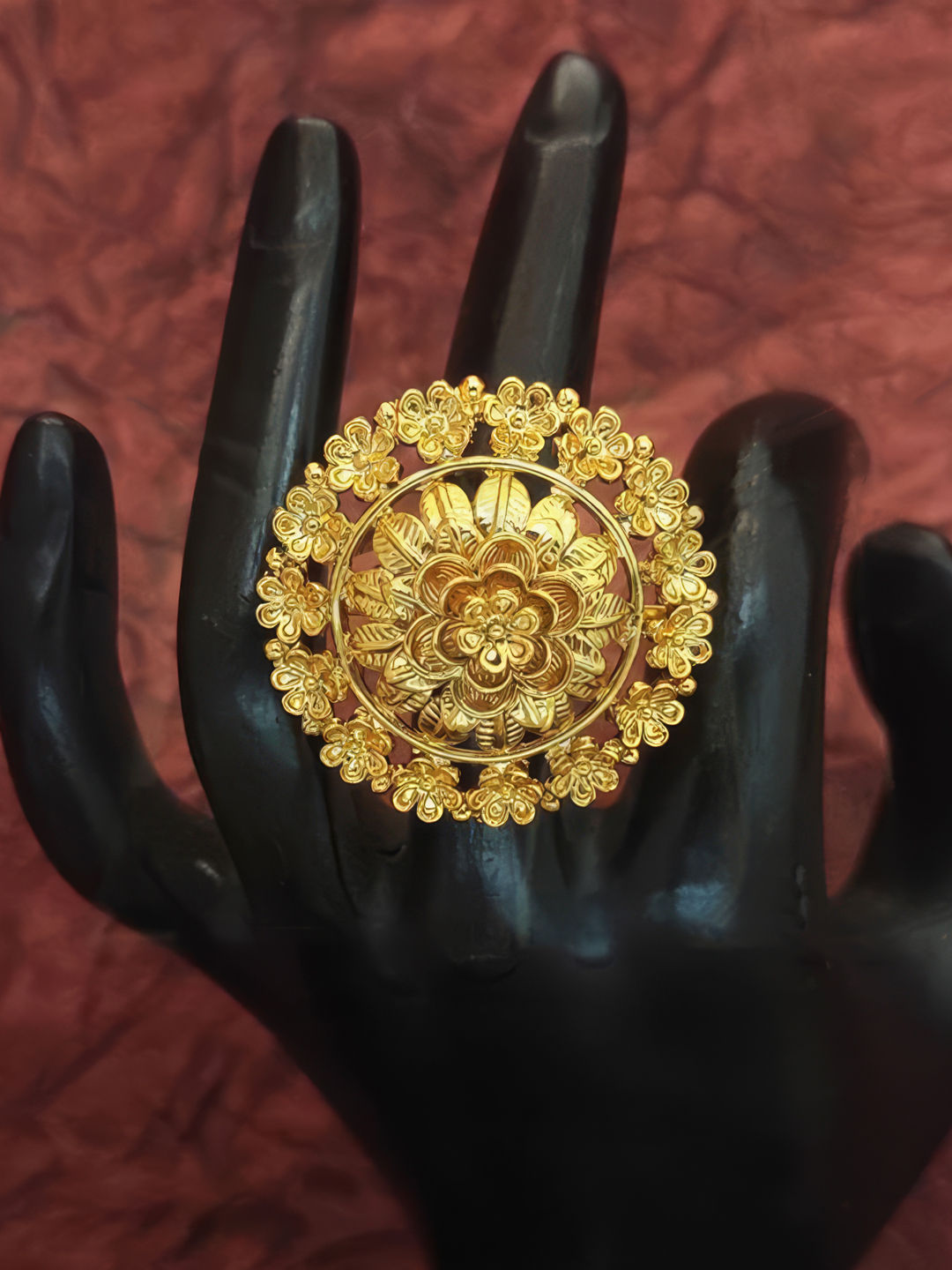 Gold Rodium Polish Gold color Ring in Metal Alloy studded with Artificial