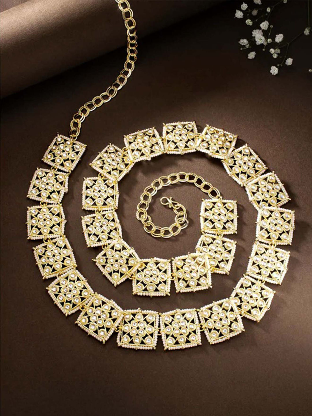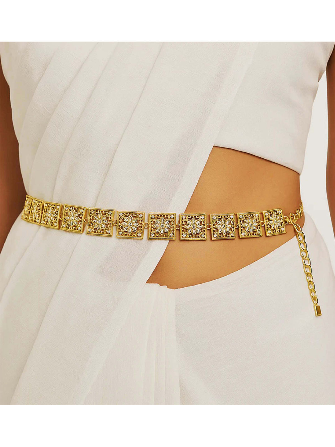 Gold Rodium Polish Gold color Waist Chain in Metal Alloy studded with Artificial
