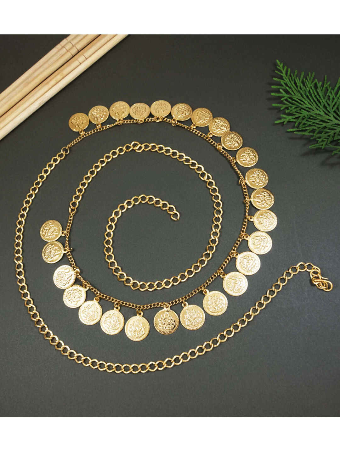 Gold Rodium Polish Gold Waist Chain in Metal Alloy with Artificial