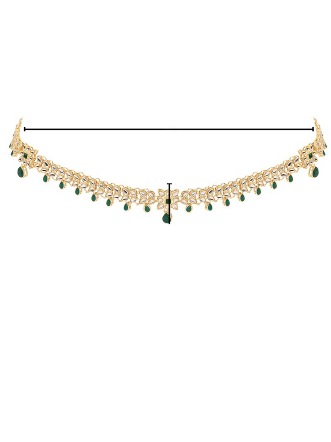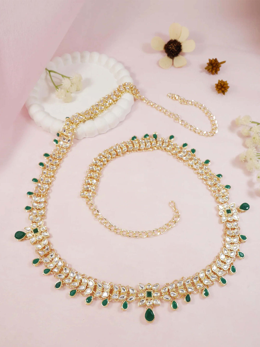 Gold Rodium Polish Green color Waist Chain in Metal Alloy studded with Artificial