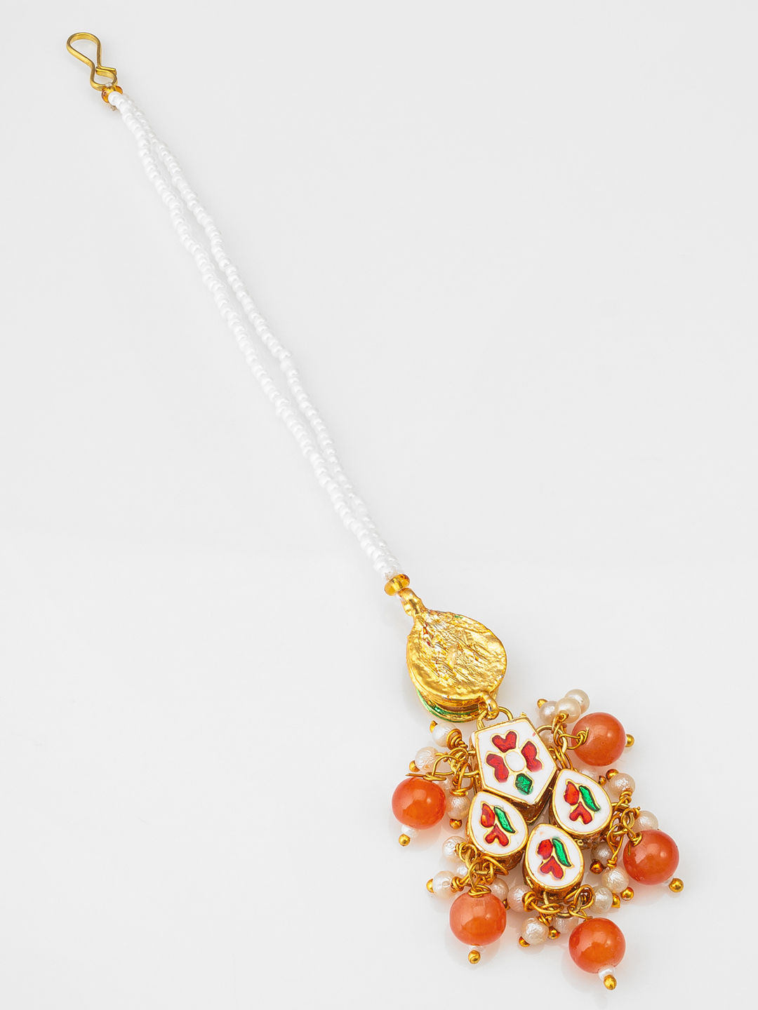 Gold Rodium Polish Orange Mang Tikka in Brass with Pearl