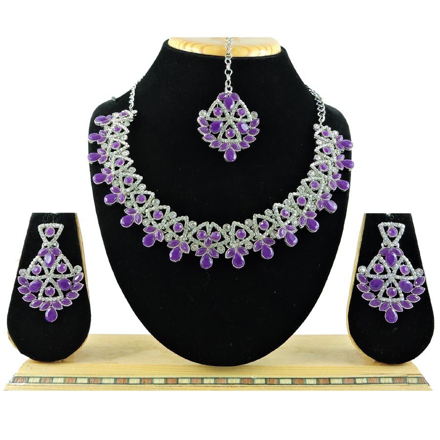 Gold Rodium Polish Purple and Violet color Necklace in Metal Alloy studded with Austrian diamond