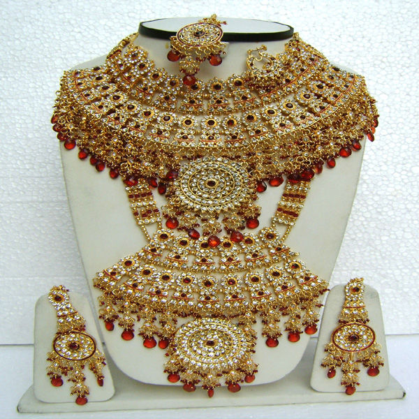 Gold Rodium Polish Red and Maroon Bridal Jewelry