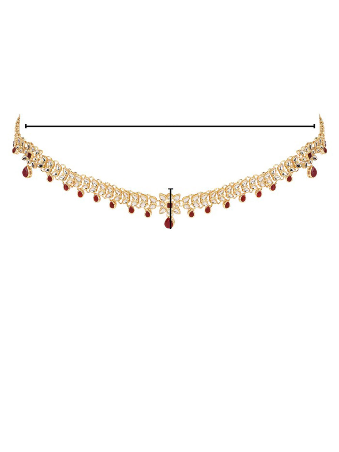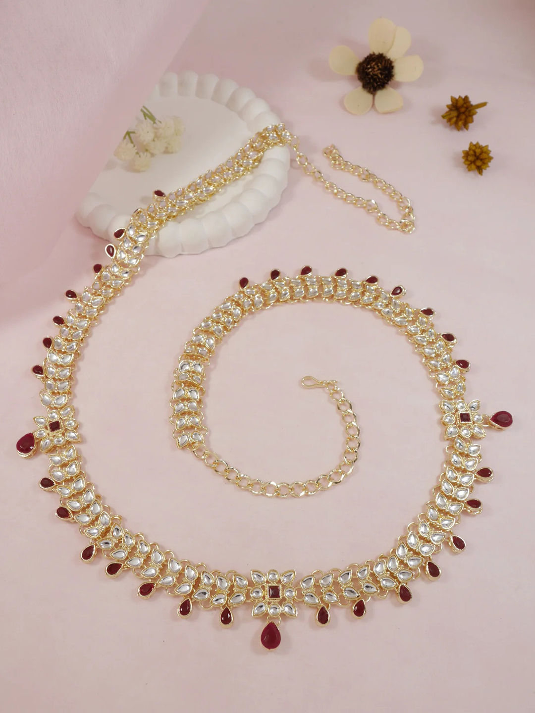 Gold Rodium Polish Red and Maroon color Waist Chain in Metal Alloy studded with Artificial