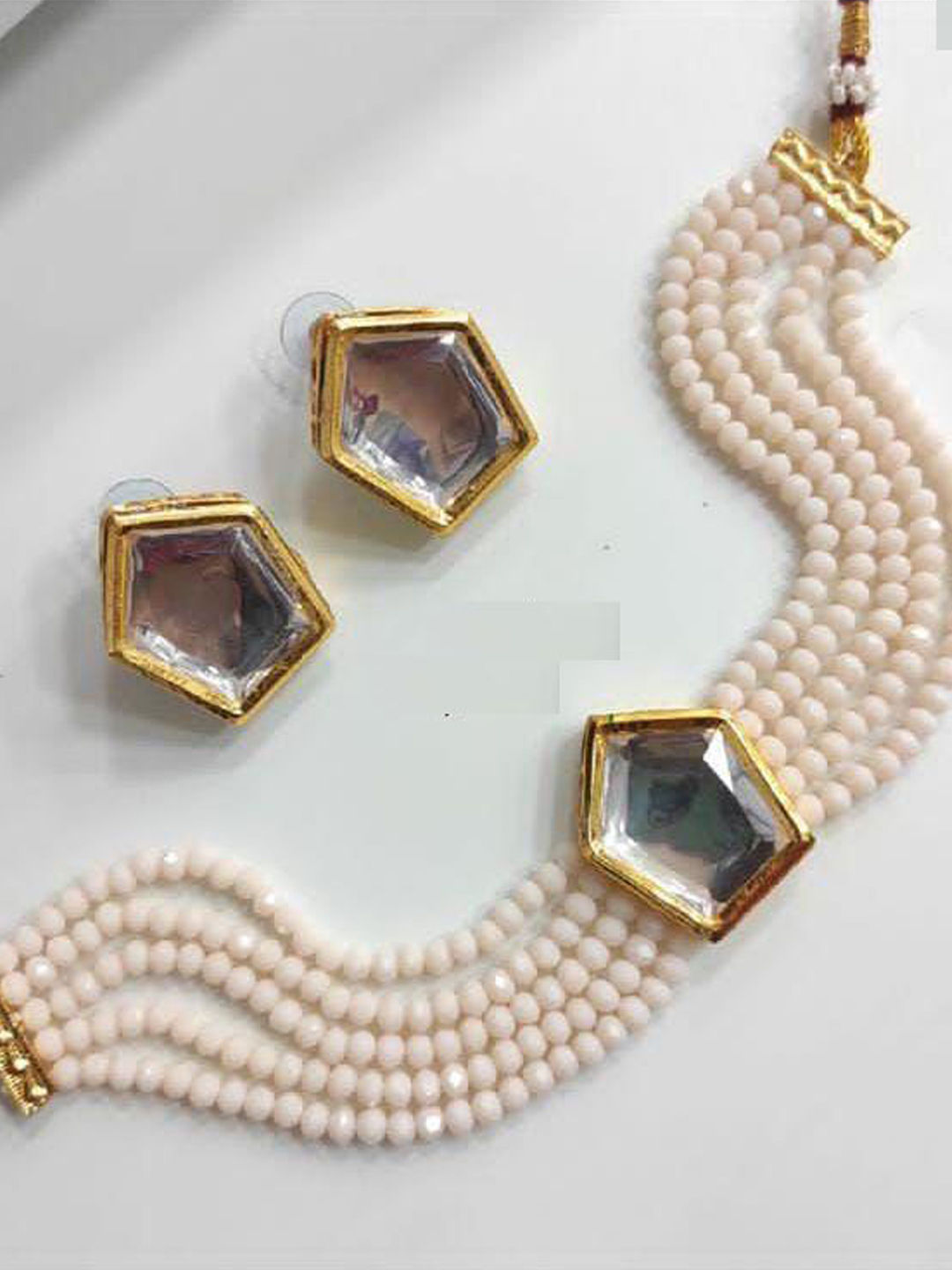 Gold Rodium Polish White and Off White color Necklace in Metal Alloy studded with CZ Diamond, Kundan, Pearl