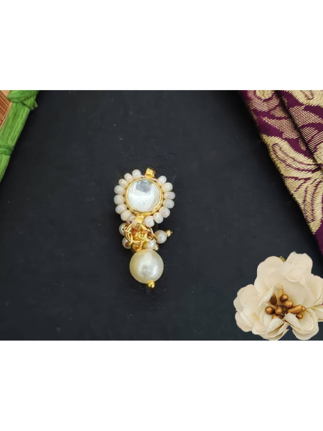 Gold Rodium Polish White and Off White color Nose Ring in Metal Alloy studded with Pearl