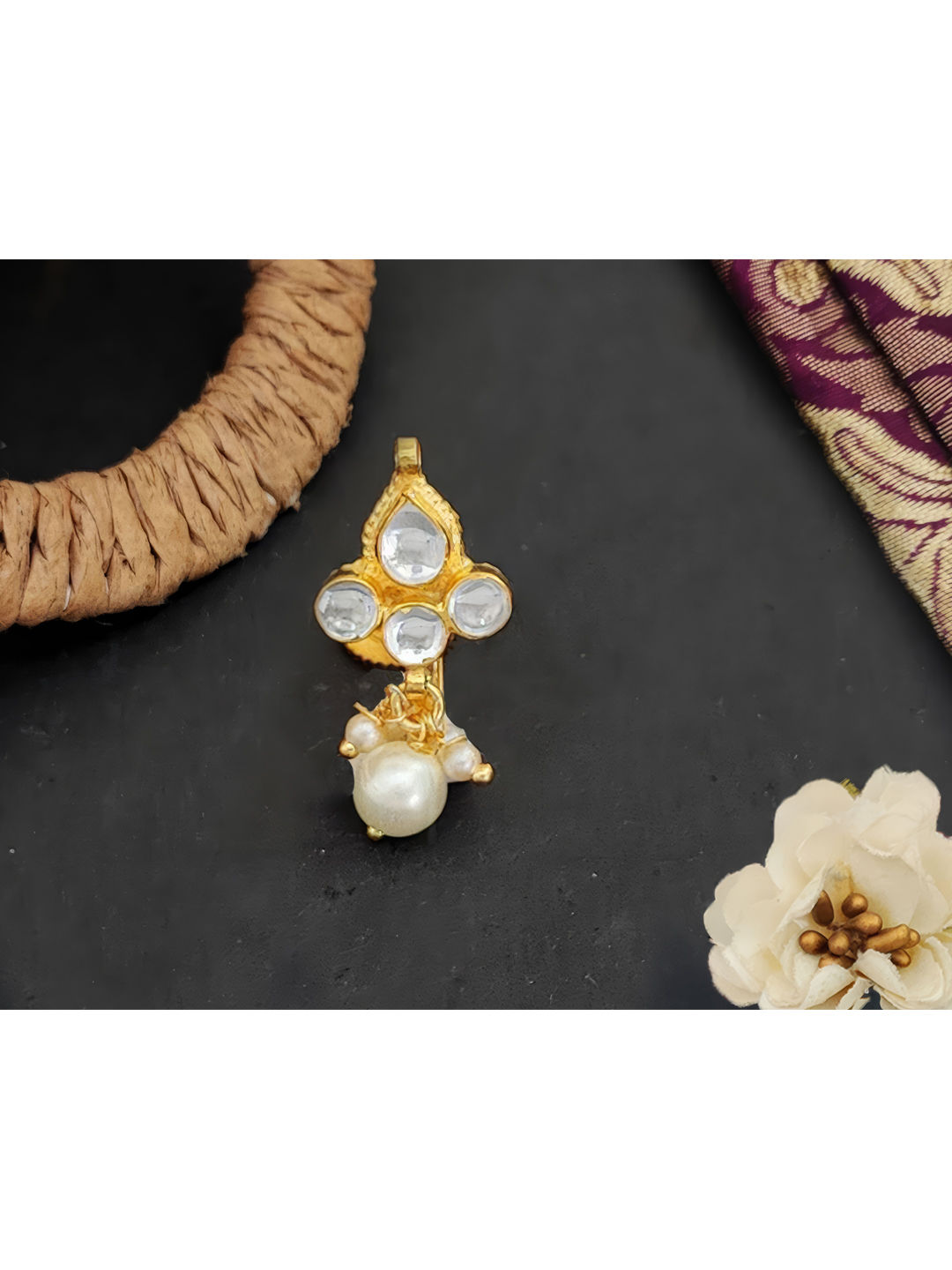 Gold Rodium Polish White and Off White color Nose Ring in Metal Alloy studded with CZ Diamond, Pearl