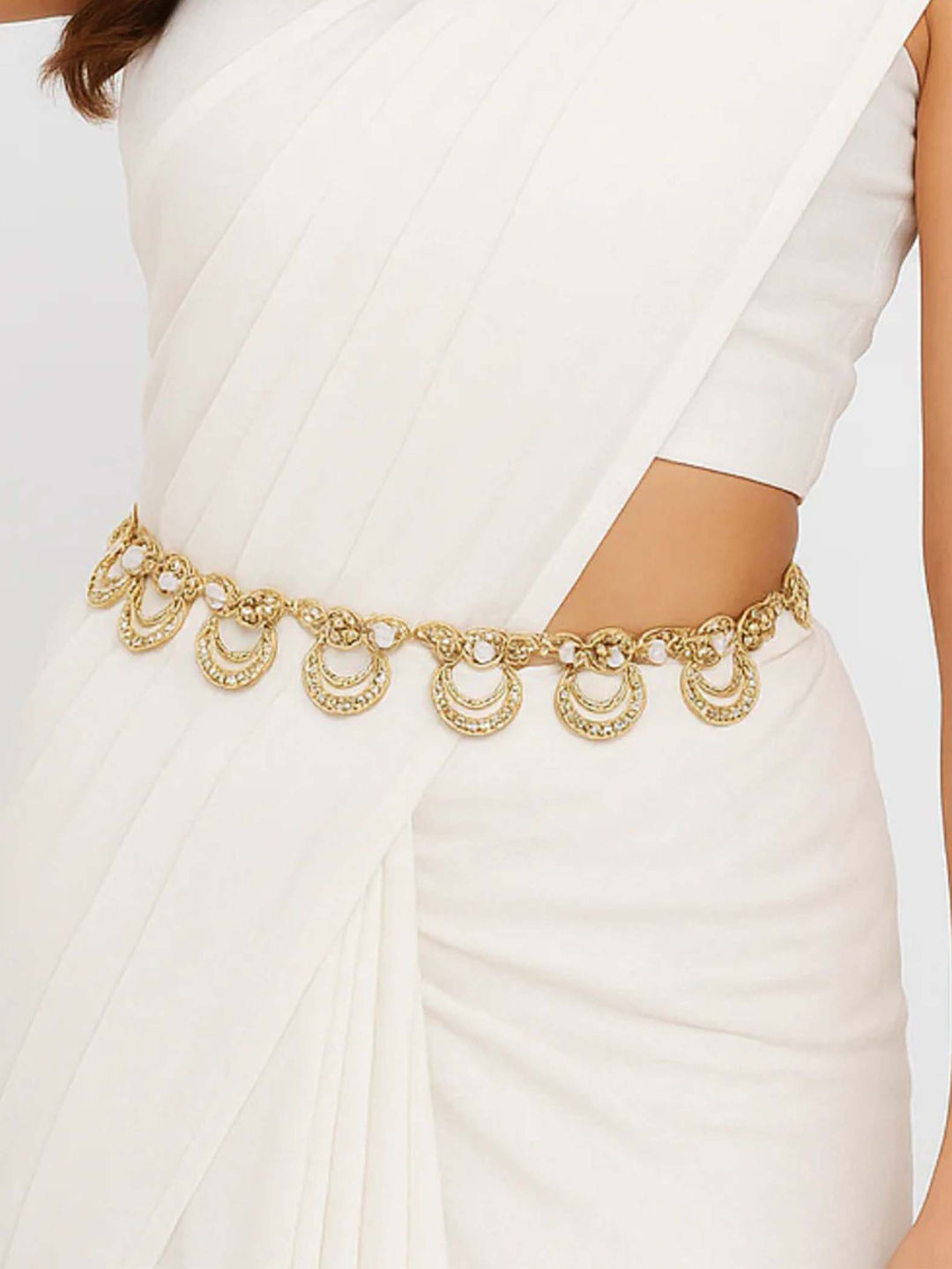 Gold Rodium Polish Gold Waist Chain in Metal Alloy with Artificial