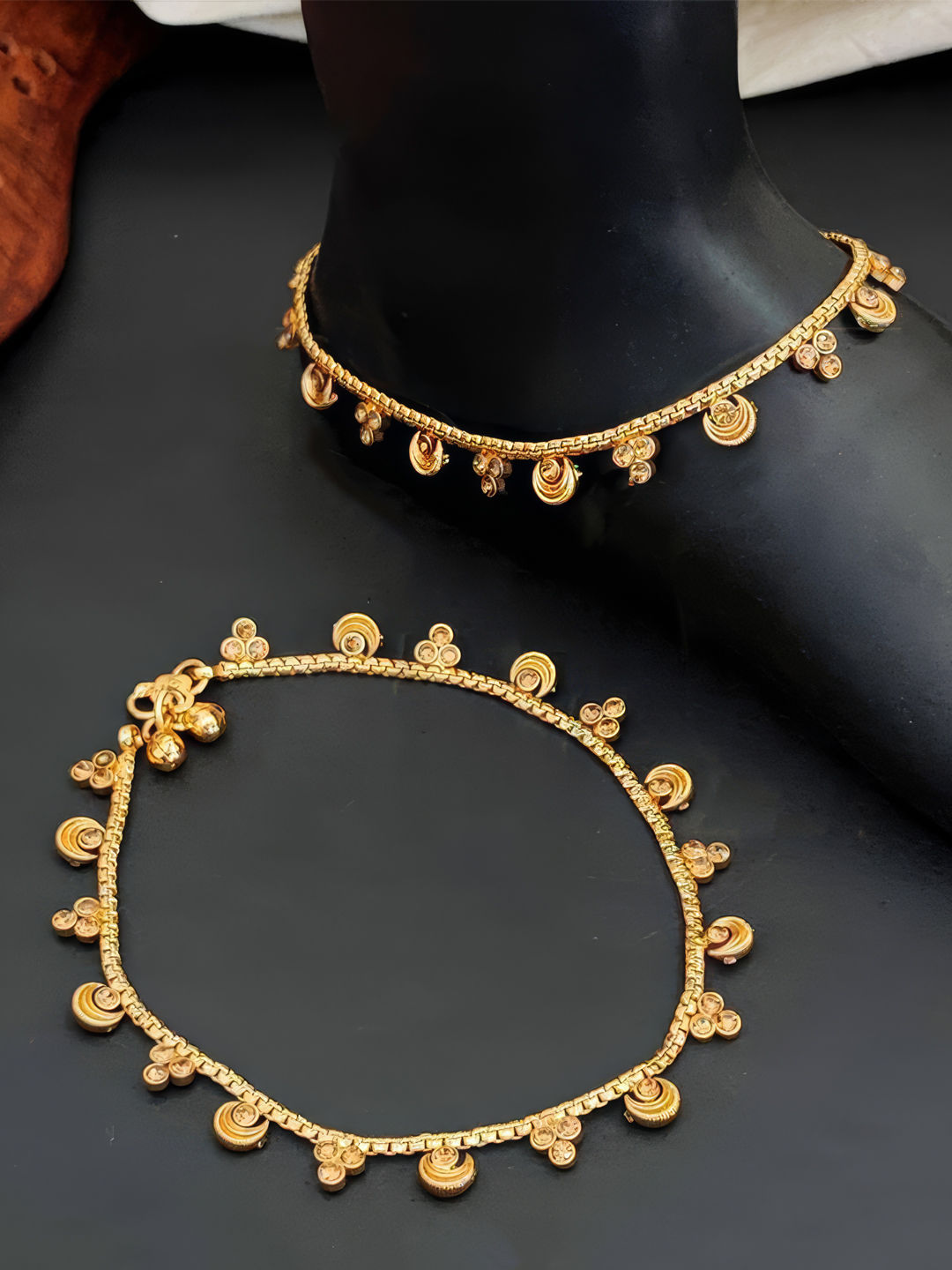 Gold Rodium Polish Yellow color Anklet in Metal Alloy studded with Artificial